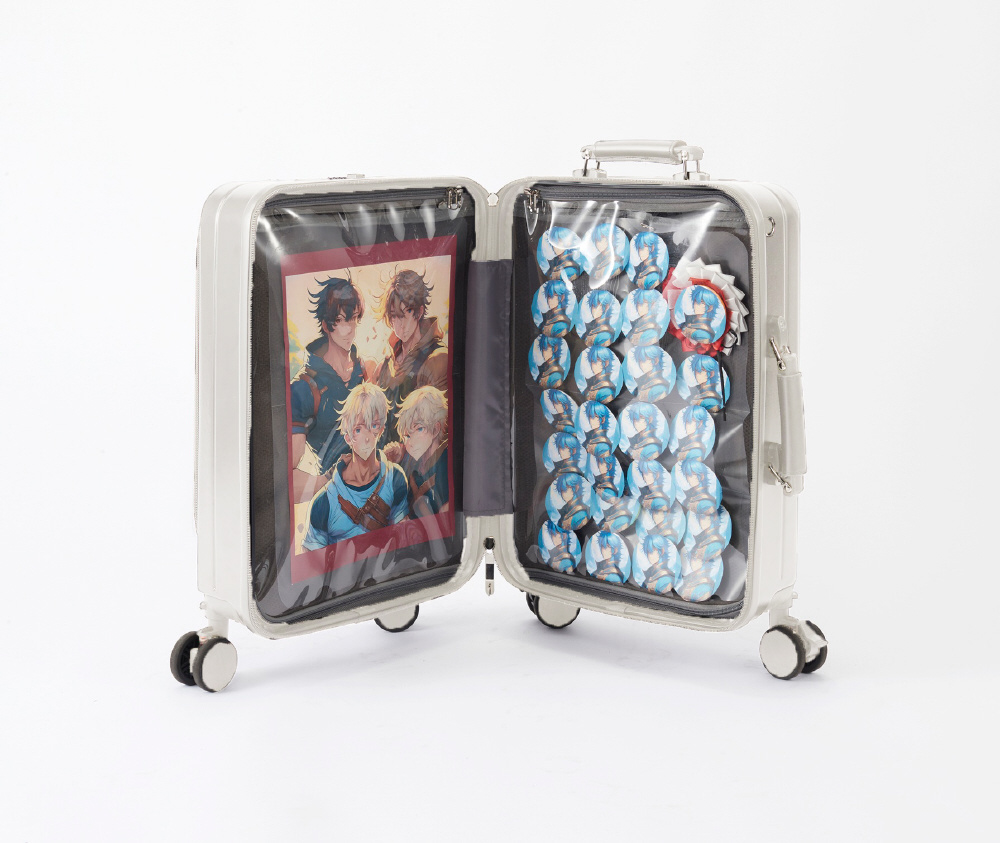 前面透明パネル:推しぬいや缶バッジ、バンTを魅せるためのスペース