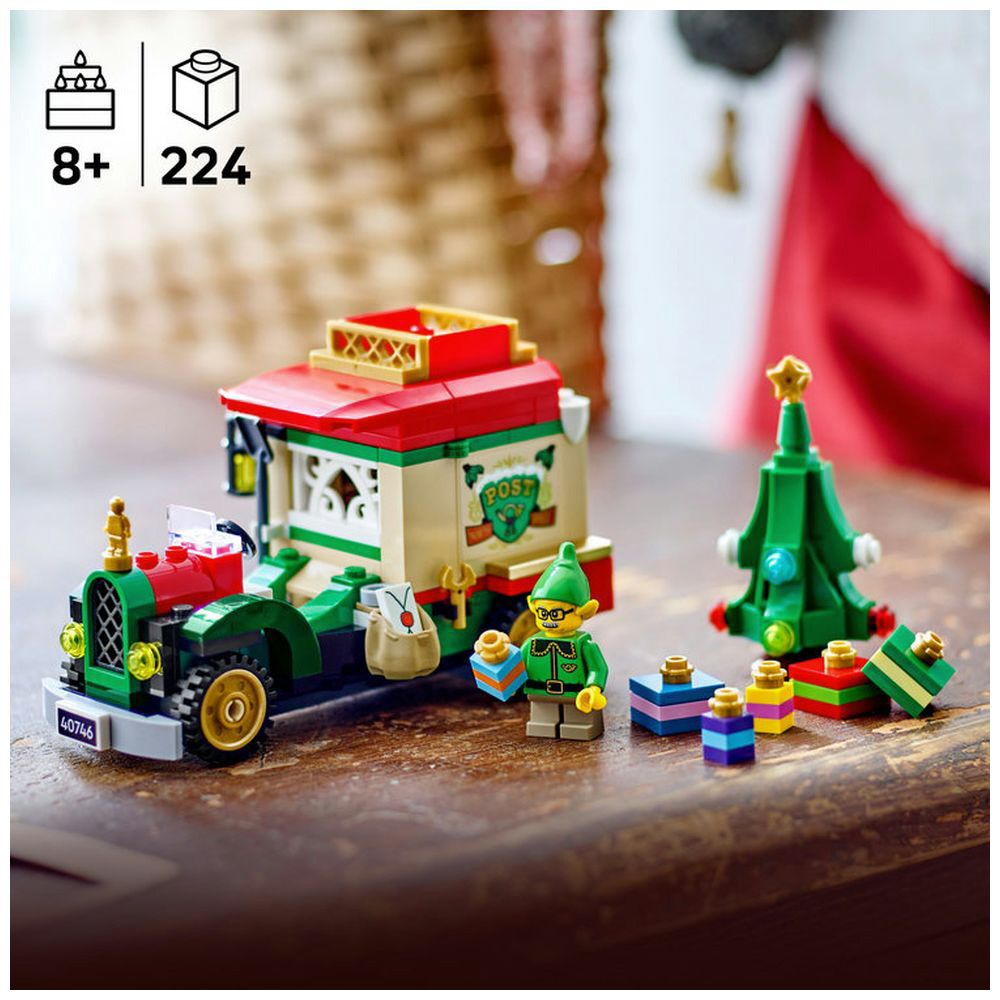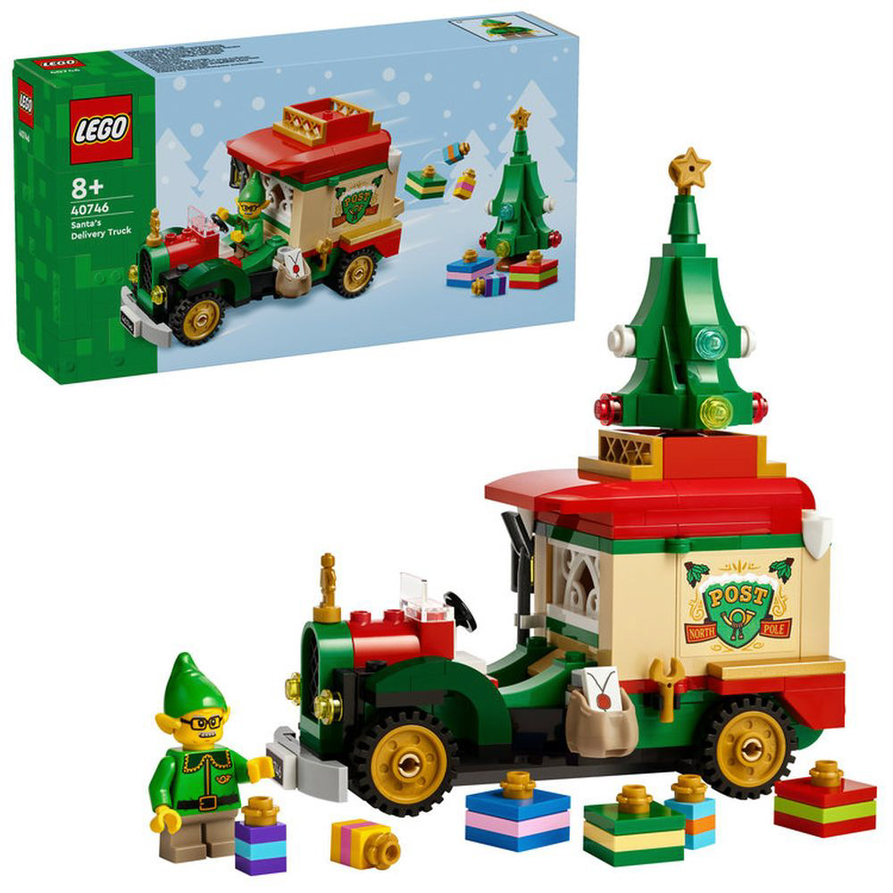 サンタのトラックの運転席にエルフのミニフィギュアを座らせてごっこ遊びを楽しめるクリスマスのレゴ(R) セット。