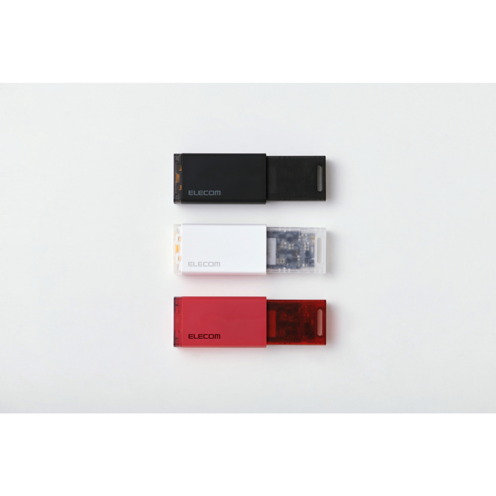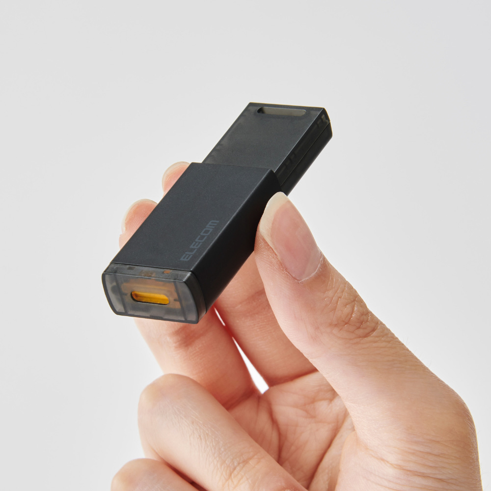 キャップを紛失する心配がないノック式で、パソコンなどの機器への接続がスムーズに。USBポートから引き抜くと自動でシャッターが開閉し、コネクター部分が収納されます。