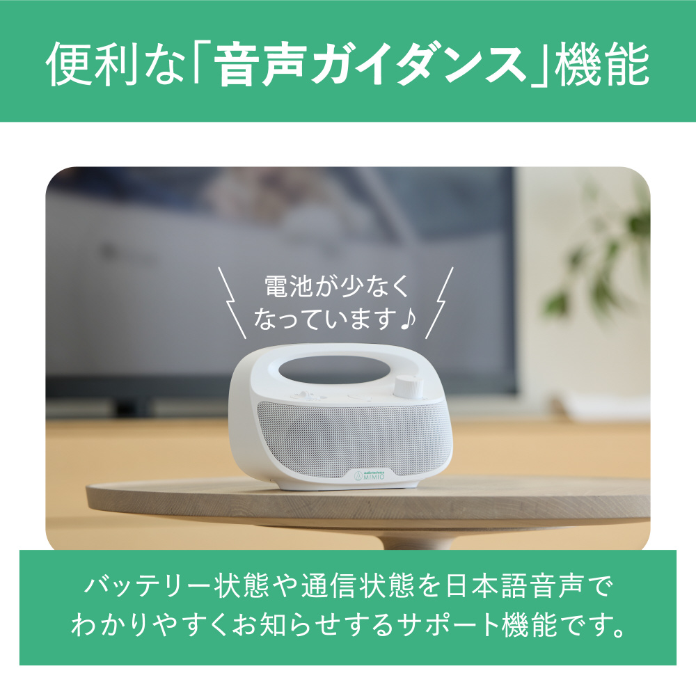 「電池が少なくなっています」「送信機からの電波が届きません」など、バッテリー状態や通信状態を日本語音声でわかりやすくお知らせするサポート機能です。