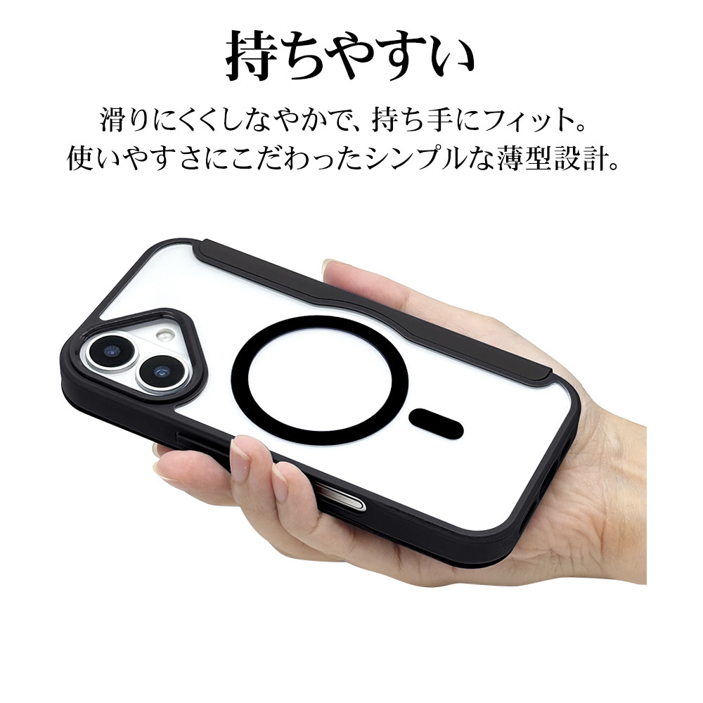 本製品はMagSafeリング付きのハイブリッドケースにフタが付いた、薄型で持ちやすい手帳型ケースです。