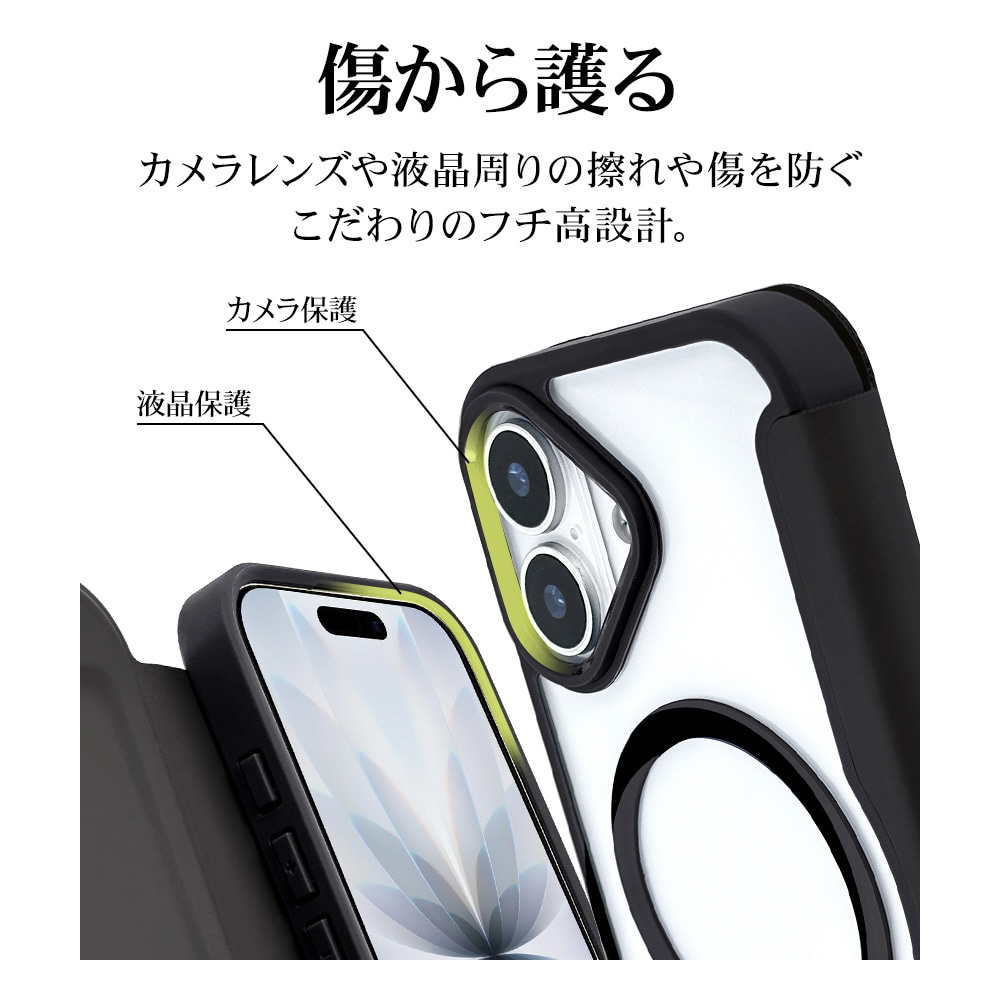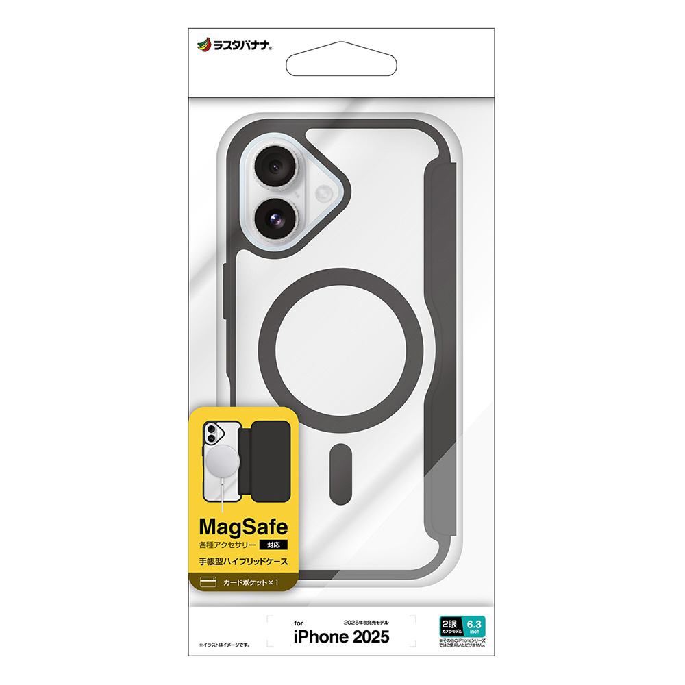 iPhone 17(6.3インチ) ケース ハイブリッド手帳 磁力充電対応 ブラック 8865IP5ABHPMBK