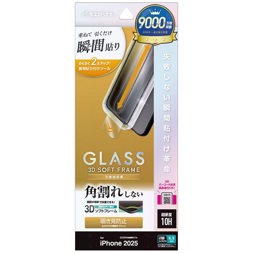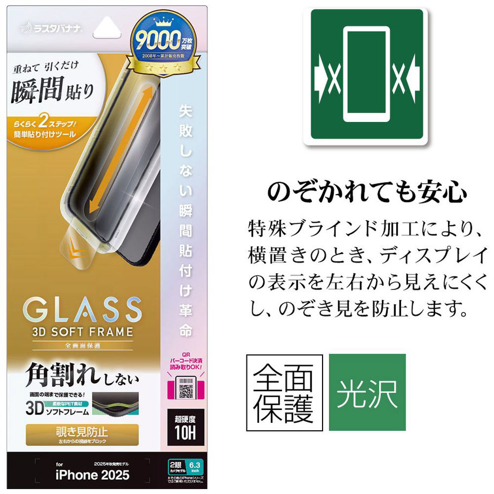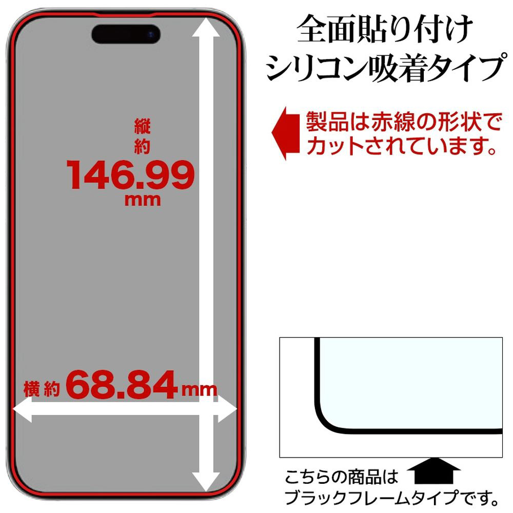 iPhone 17(6.3インチ)フィルム 貼付革命 ソフトフレーム ガラス 覗き見防止 MTK4893IP5A