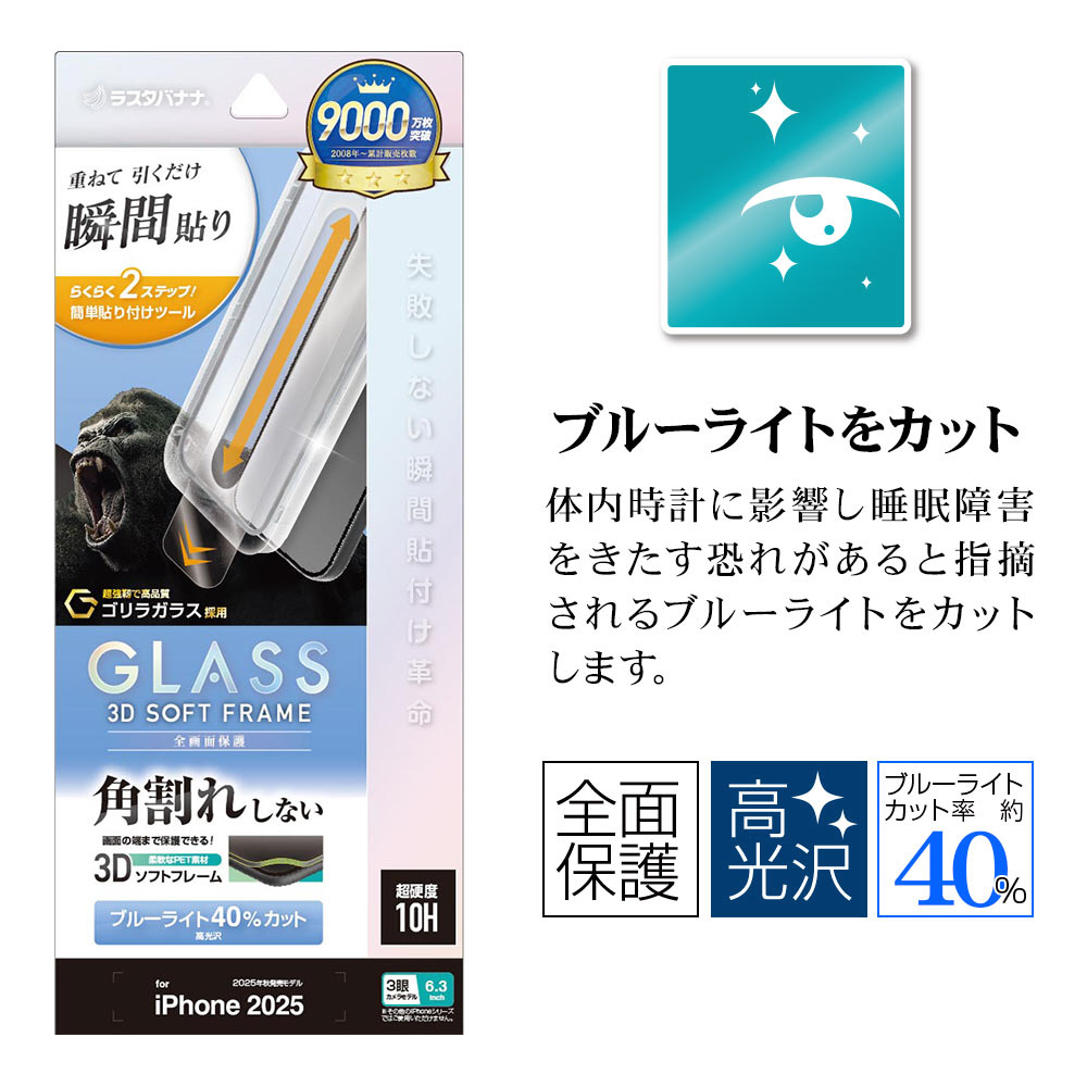 iPhone 17 Proフィルム 貼付革命 ソフトフレーム ゴリラガラス ブルーライトカット