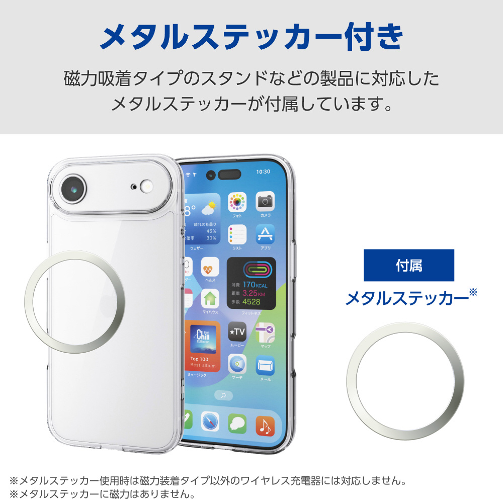 メタルステッカー使用時は磁力装着タイプ以外のワイヤレス充電器には対応しません。