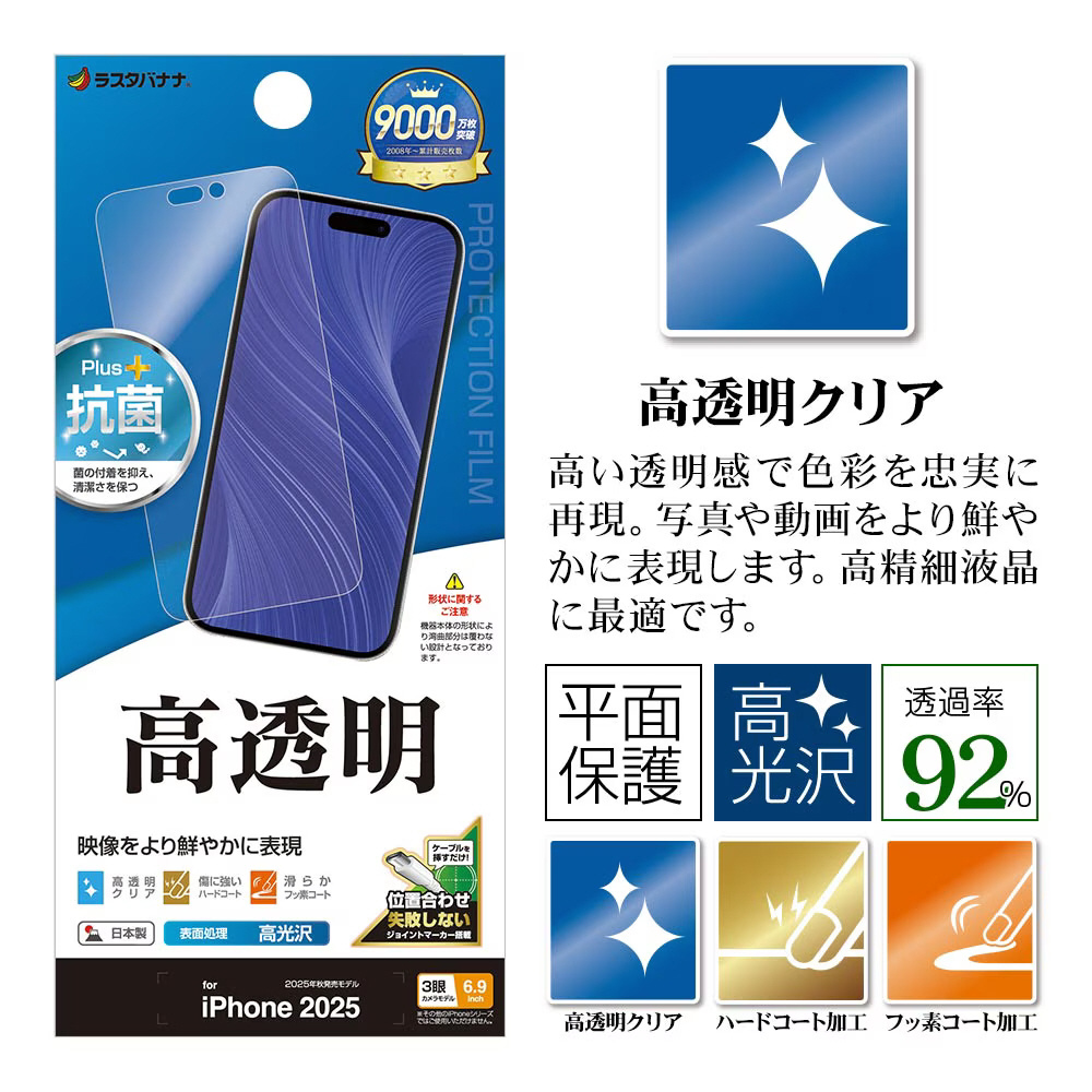 高い透過率、くもりの少ないフィルムを採用。写真や動画をより鮮やかに表現するフィルムです。