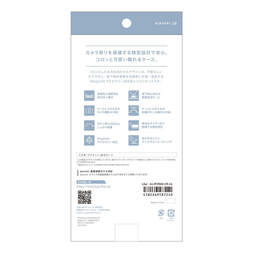 iPhone 17ケース ajouter アジュテ [Coron] MagSafe対応 超精密設計 衝撃吸収シリコンケース ライラック