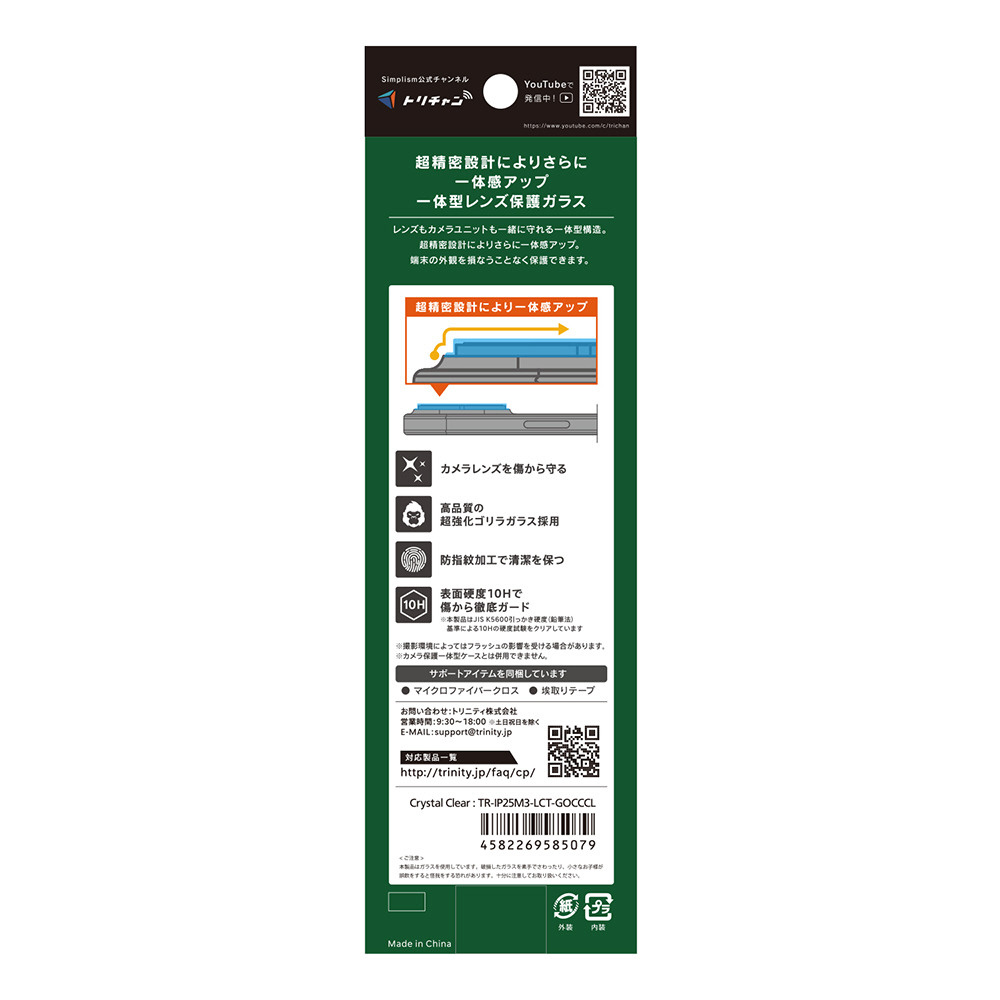 カメラ形状に合わせた専用設計で一体感抜群のレンズ保護ガラスです。