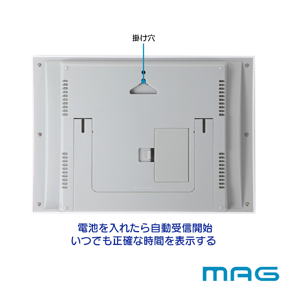 壁掛け時計・置き時計どちらでも利用できます。置き時計として使うときは背面に収納されているスタンドを使用してください。