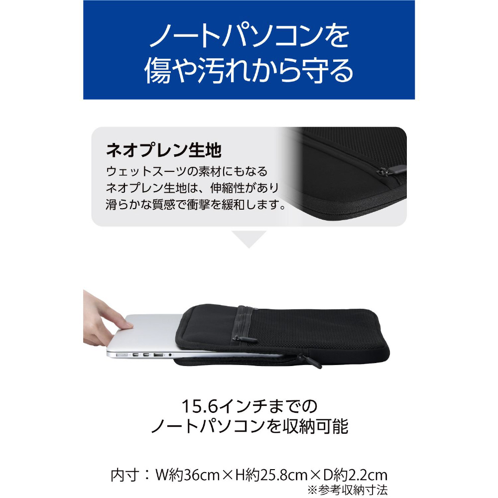 15.6インチまでのノートパソコンを収納可能です。