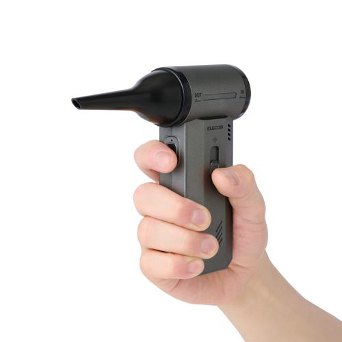 握ったまま電源のON/OFFができ、片手で簡単に操作可能。手軽にホコリを吹き飛ばせます。