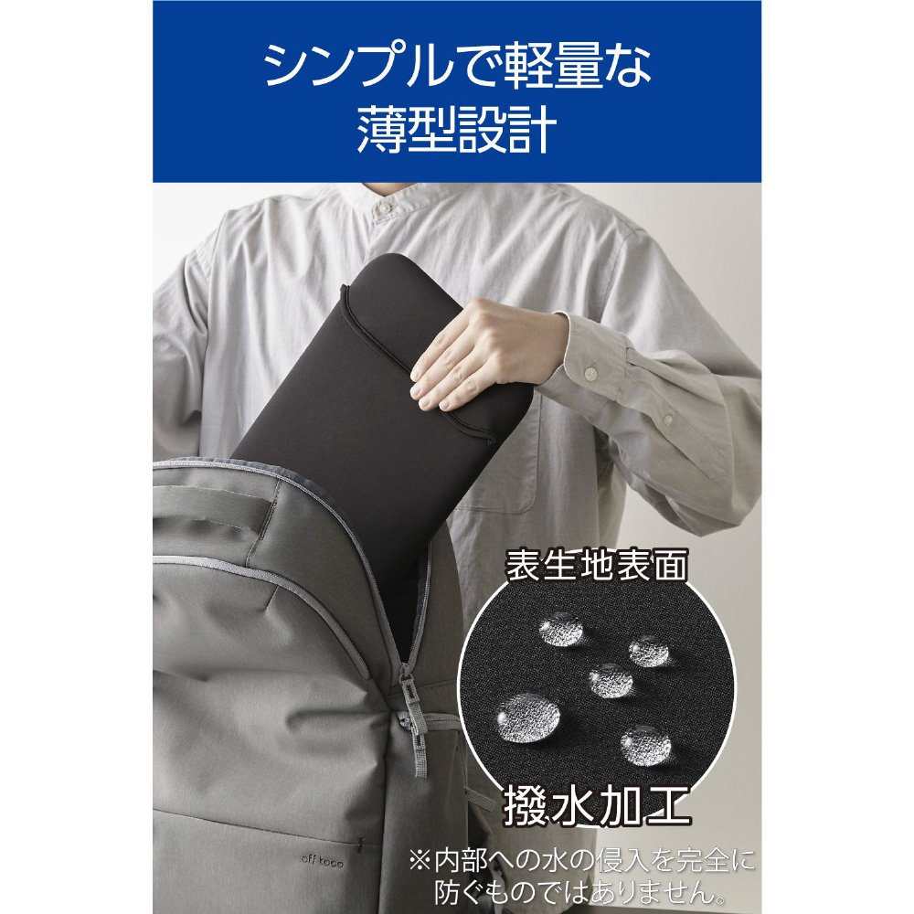 パソコン本体に無駄なくフィット!伸縮性とクッション性を兼ね備えた撥水素材を採用した、インナースリーブです。ポケットを省いたシンプルかつスリムな設計で、かばんの中でも邪魔になりません。