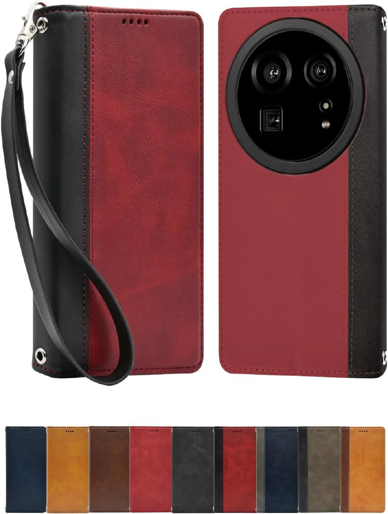 AQUOS R9 Pro SH-54E 手帳型 ケース カバー 本革調 レザーケース レッド×ブラック SHAQR9PBIRB