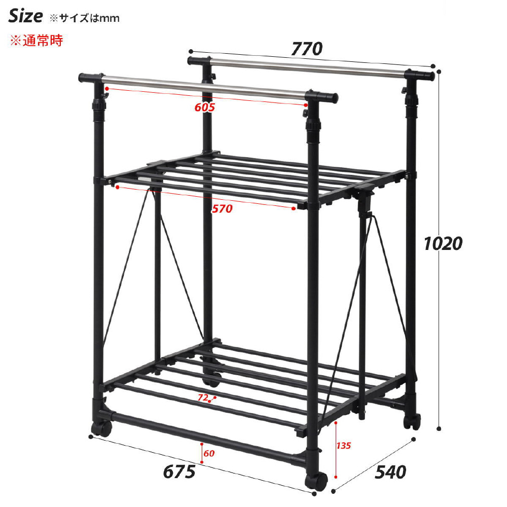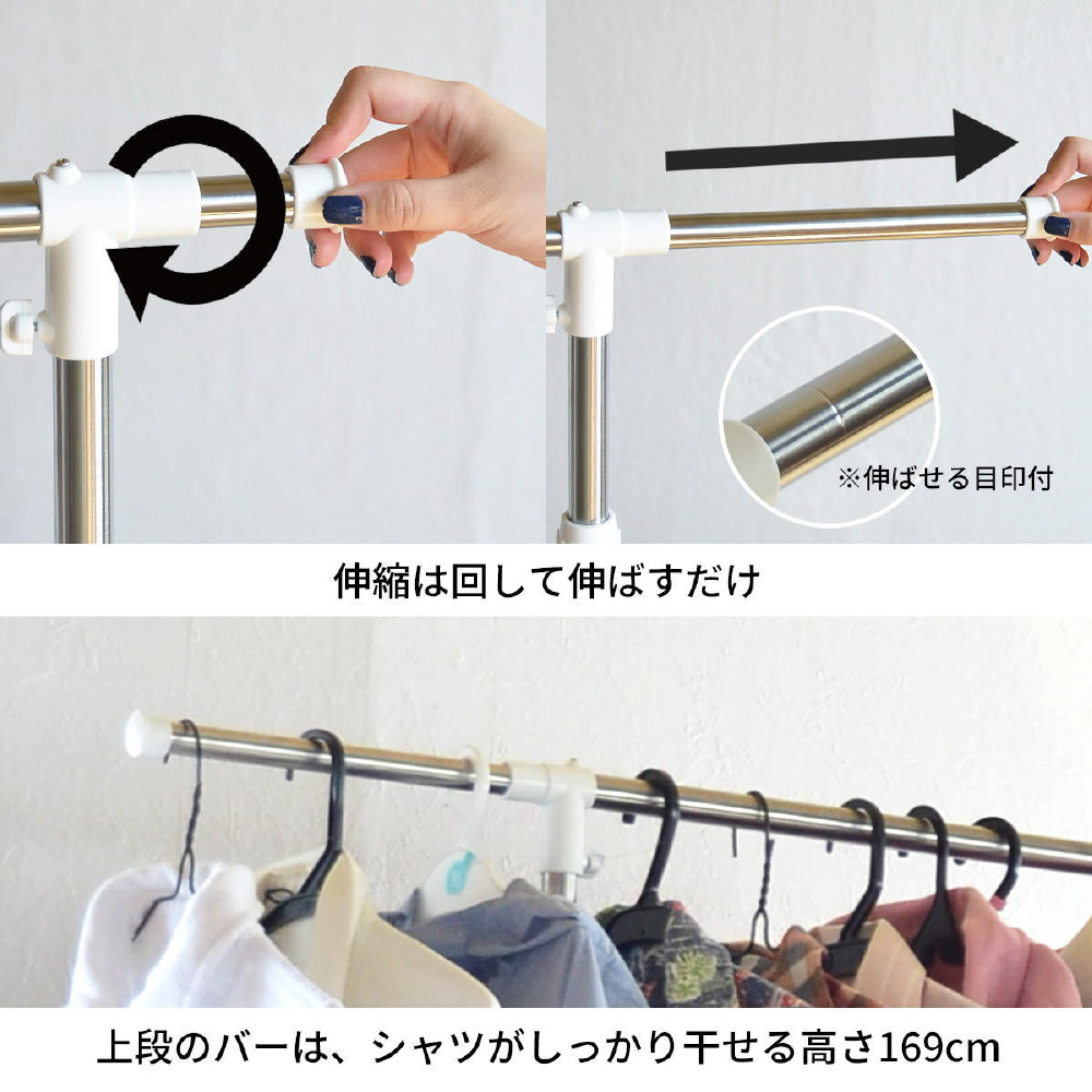 ワンタッチ収納洗濯物干しラック ワイド ホワイト ONLR-0065WHT