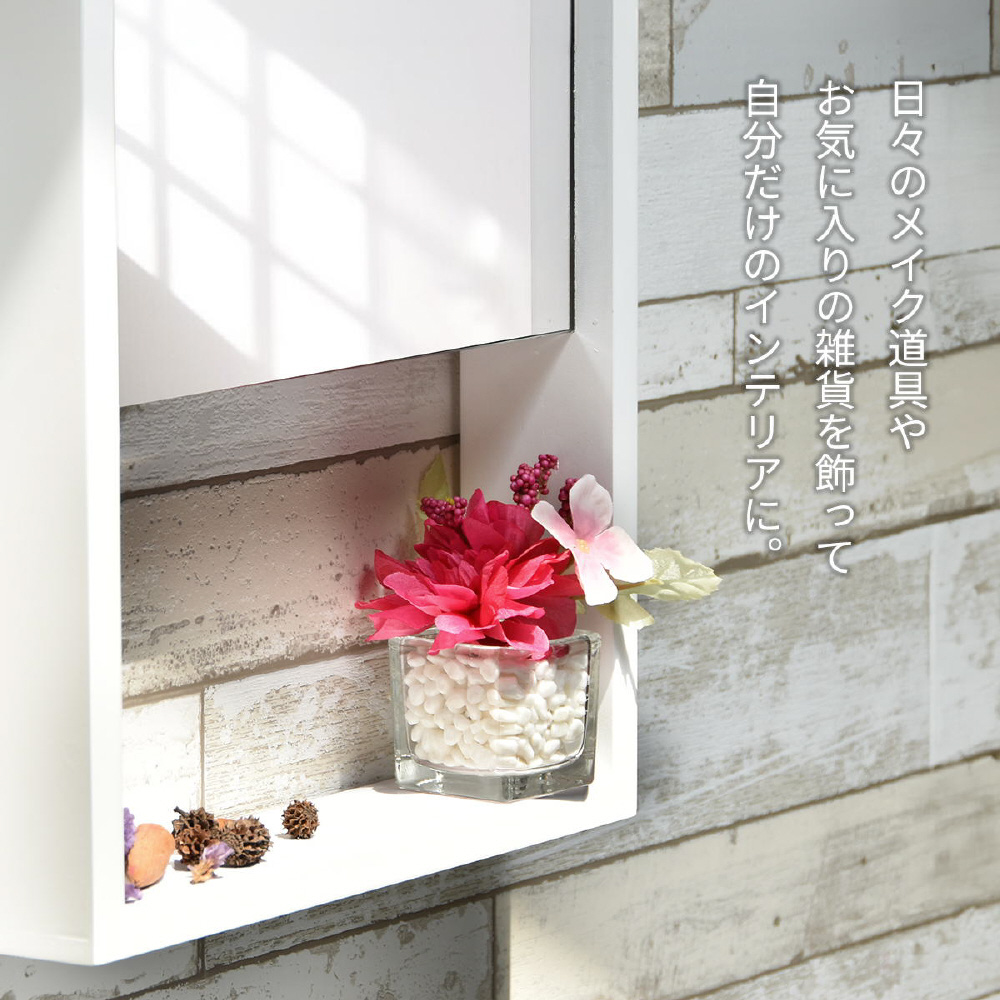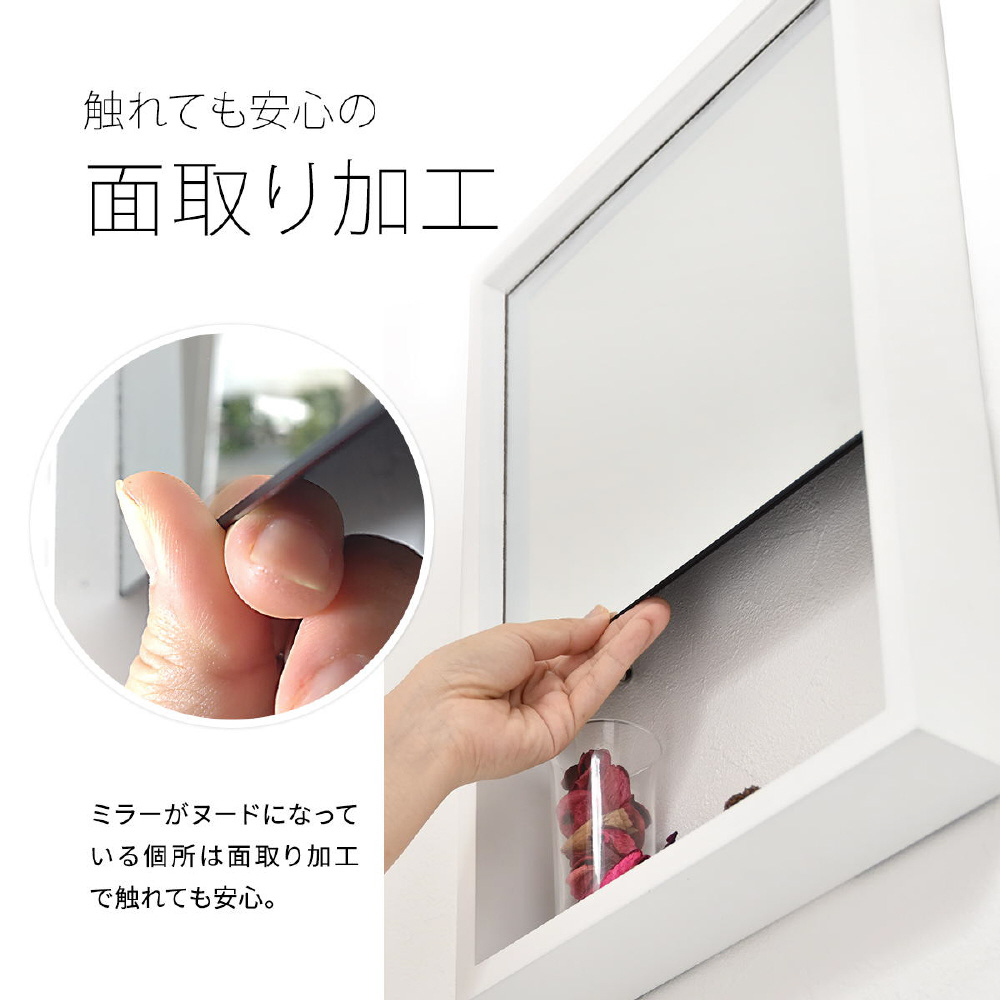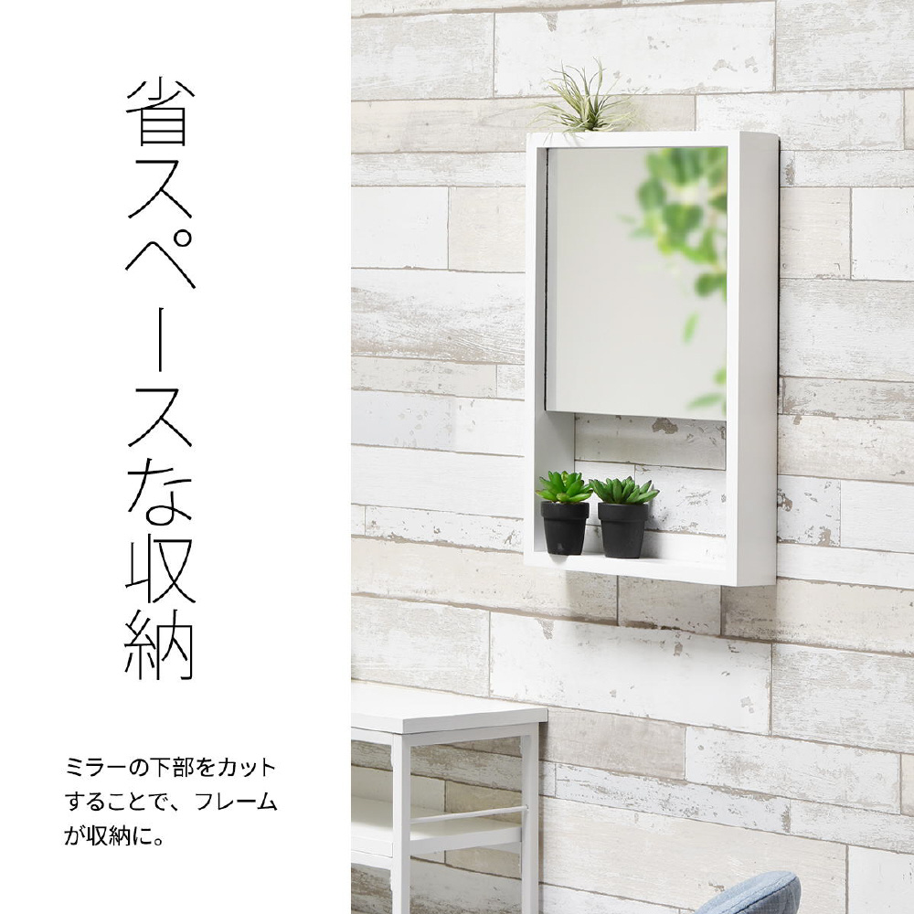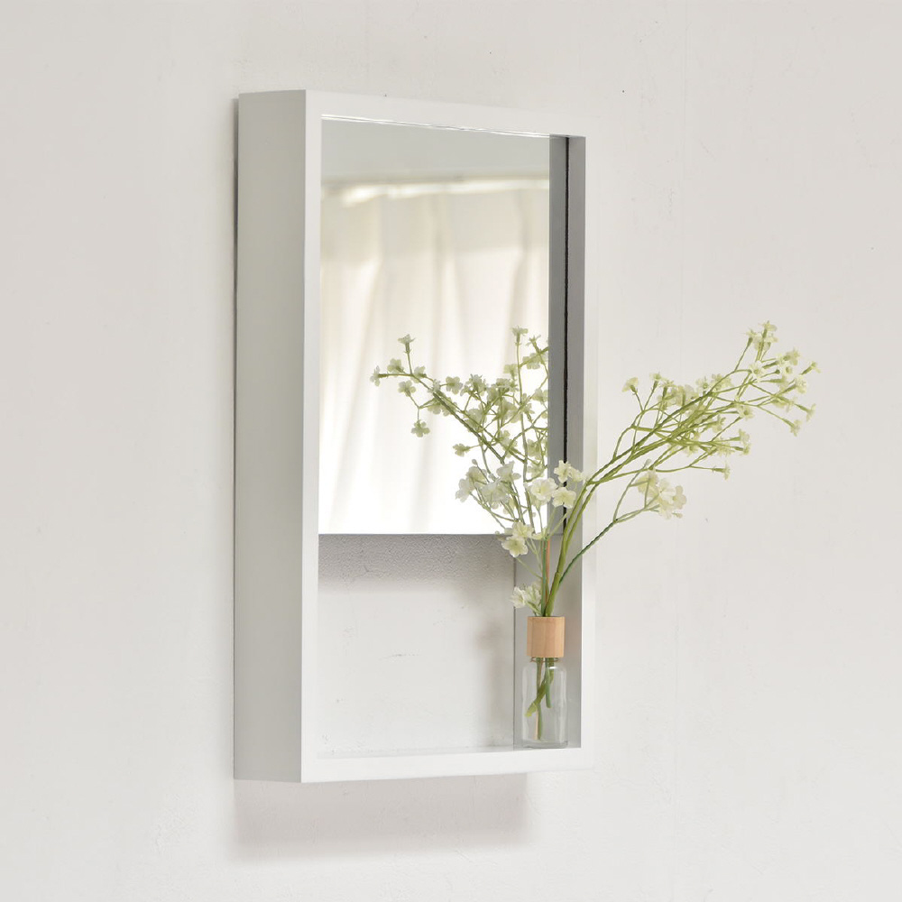BF DECOシリーズの壁掛けミラー。フレームをホワイトで統一したBF DECOシリーズは、インテリアアイテムとしてもお部屋を彩ります。ちょっとした収納スペースがありますので、ハンドボトルや香水、鍵などを置くのに便利です。小物とも調和がとれやすいシンプルでおしゃれなデザインになっています。