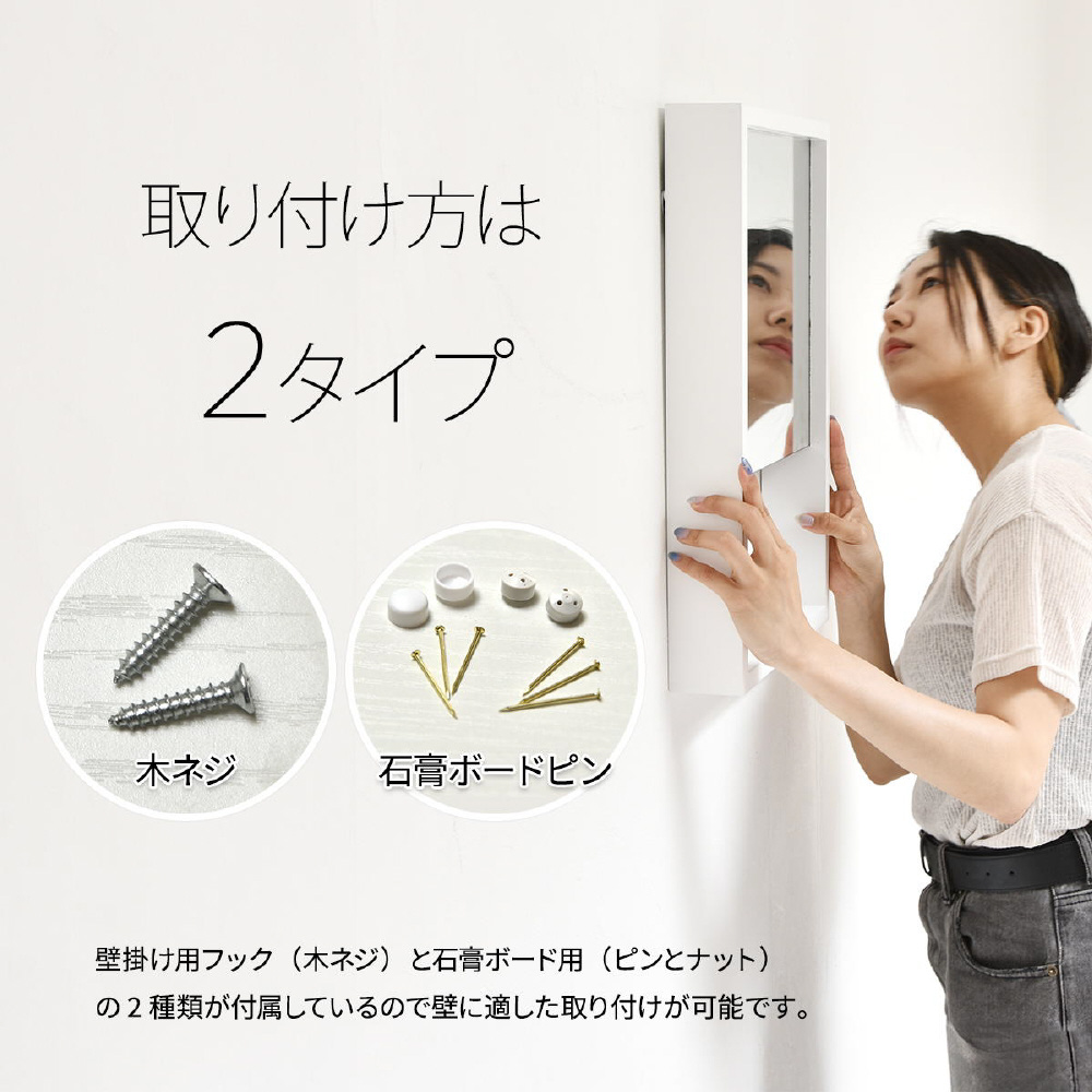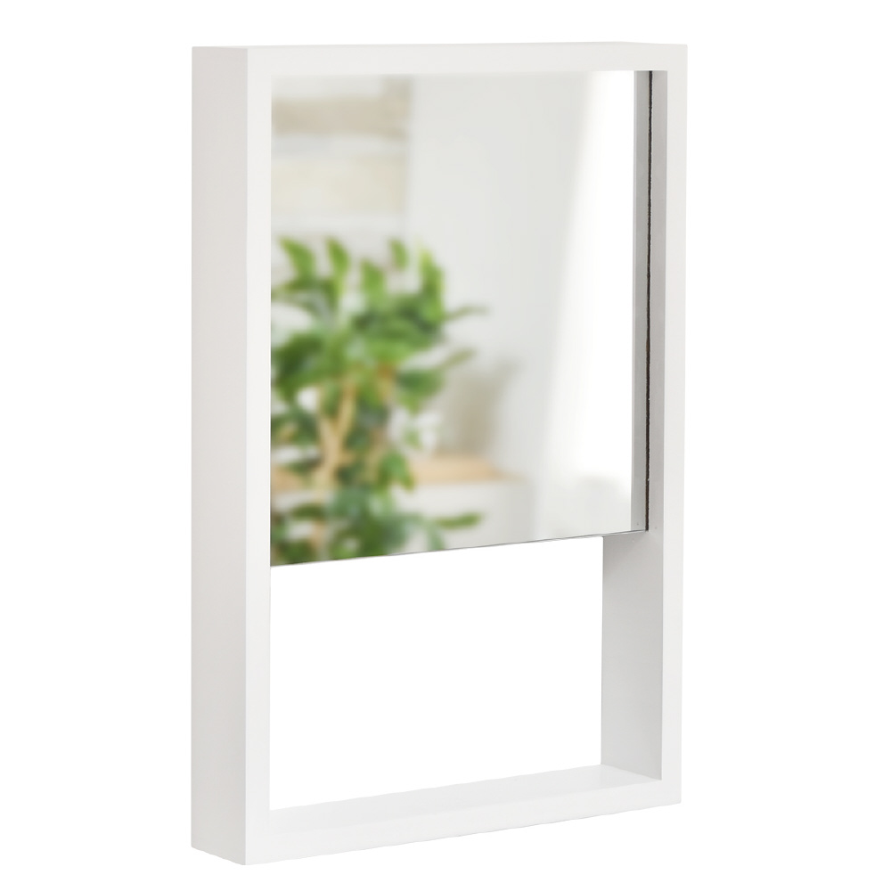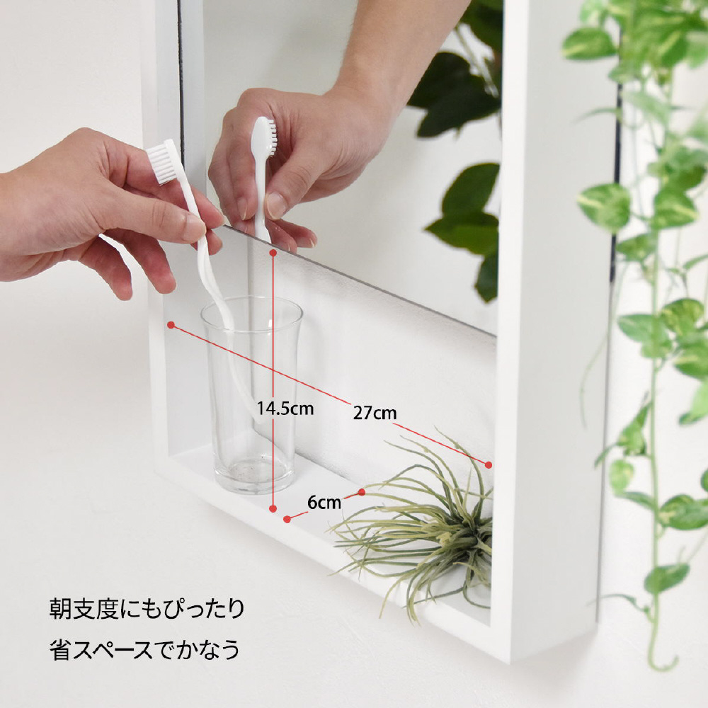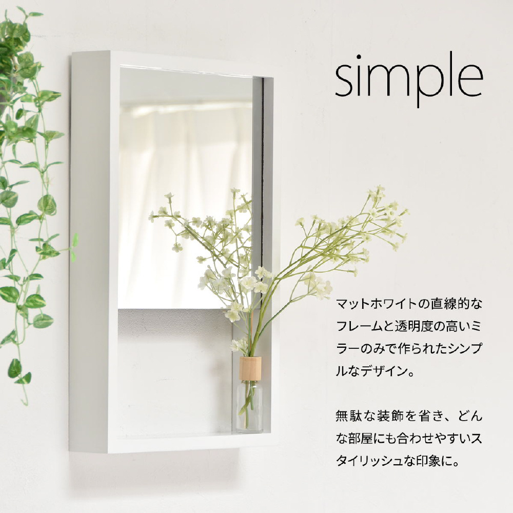 BF DECOシリーズの壁掛けミラー。フレームをホワイトで統一したBF DECOシリーズは、インテリアアイテムとしてもお部屋を彩ります。ちょっとした収納スペースがありますので、ハンドボトルや香水、鍵などを置くのに便利です。小物とも調和がとれやすいシンプルでおしゃれなデザインになっています。