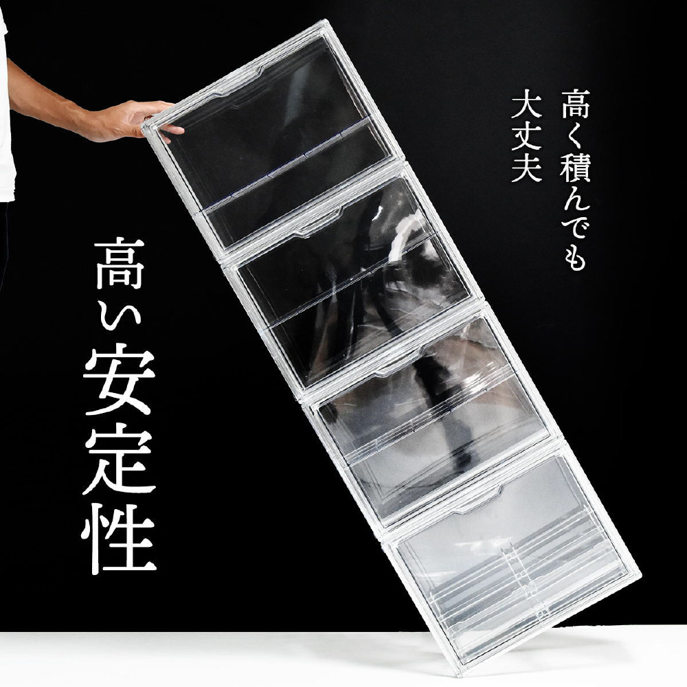 透明度が高いディスプレイ収納ケース2点セット。外からでも中にしまったものが見分けられるので、必要なときに必要なものをサッと取り出せます。傷がつきにくく頑丈であることもPET素材の特長のひとつ。「見せる収納」として、アクセサリーや時計、フィギュアなどのアイテムを傷や汚れから保護しながら飾るのにも適しています。