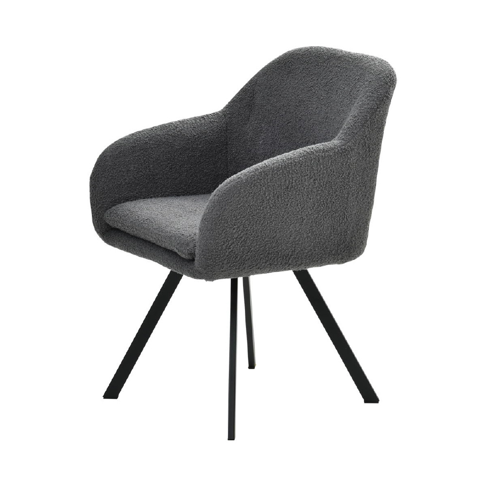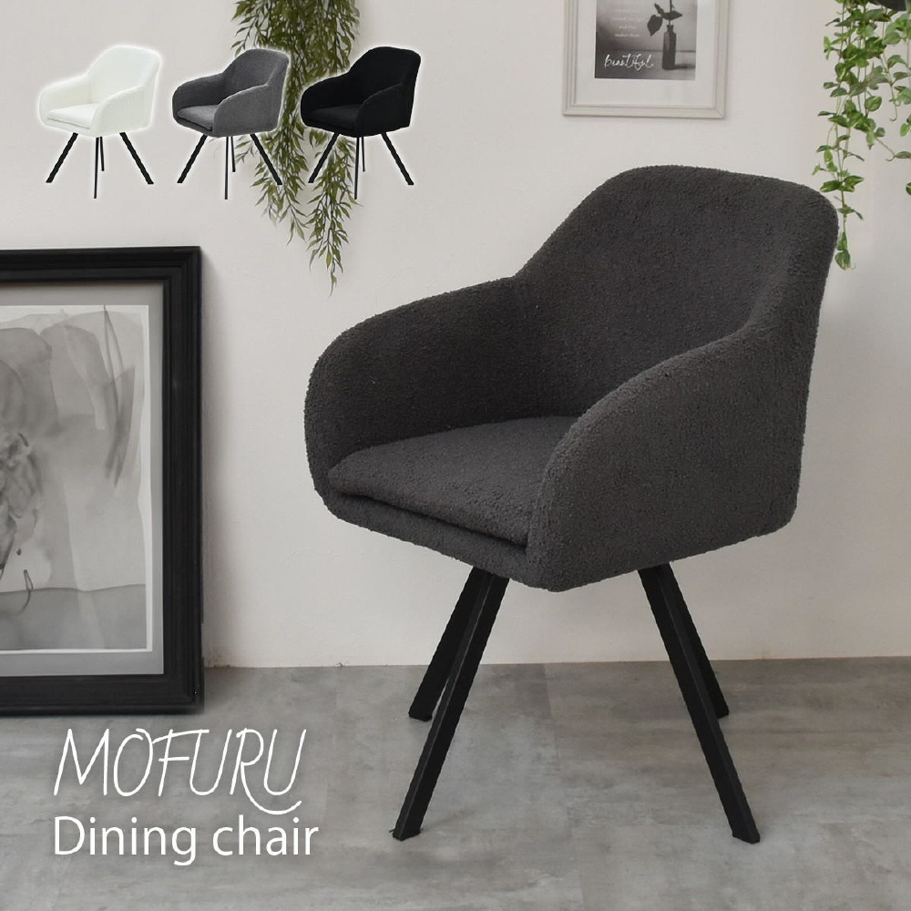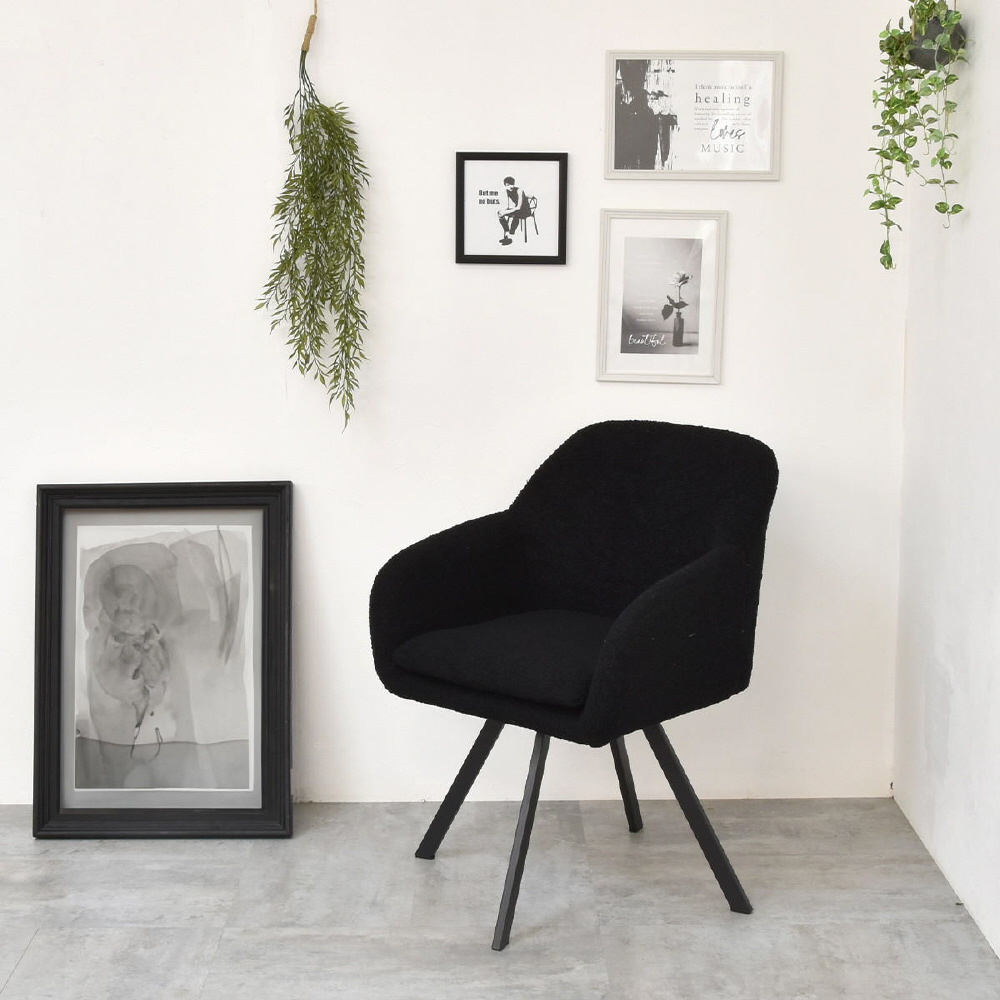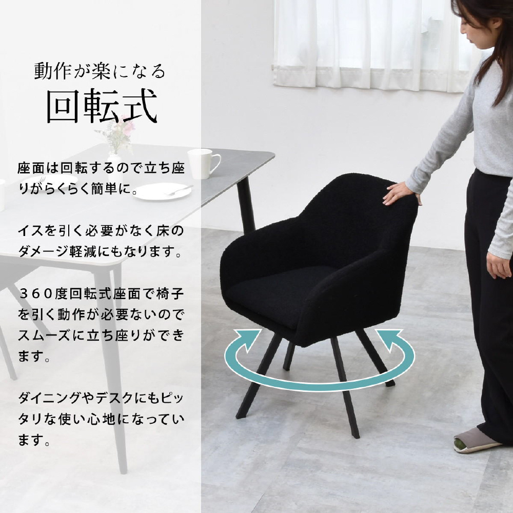 モダンなデザインのブークレ素材の回転機能付きダイニングチェア。優れた快適さと耐久性を備えています。長時間の食事や会話を楽しむのに最適です。ファブリックは触り心地がやわらかなブークレ素材。洗練されたデザインは、どんなインテリアにも調和し、快適な座り心地を提供します。上品さを醸し出しながらも甘すぎないベーシックなデザインは、モダンで落ち着いた大人の空間を演出します。