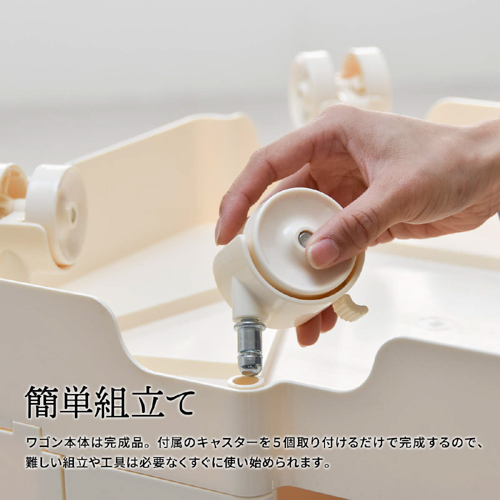キャスター付きの本体を回転させることで側面4面すべてを効率的に使える、デザイン性と機能性に優れた収納家具です。180度回転するスライドトレイや、ボトル類の保管に適した奥行きのあるポケットなど、機能性に富んだ収納スペースが随所に工夫されています。ABS樹脂製なので衝撃にも強く、汚れたときの拭き取りも簡単にお手入れができます。