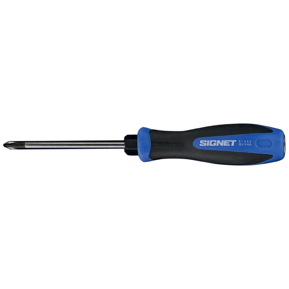 プラスドライバー。疲労感が少なく、握りやすいエルゴノミックハンドル。ブレード根元に六角部がありレンチをかけて回す事ができる。貫通タイプで、グリップエンドには打撃部があるので、固着したネジを外す際に最適。