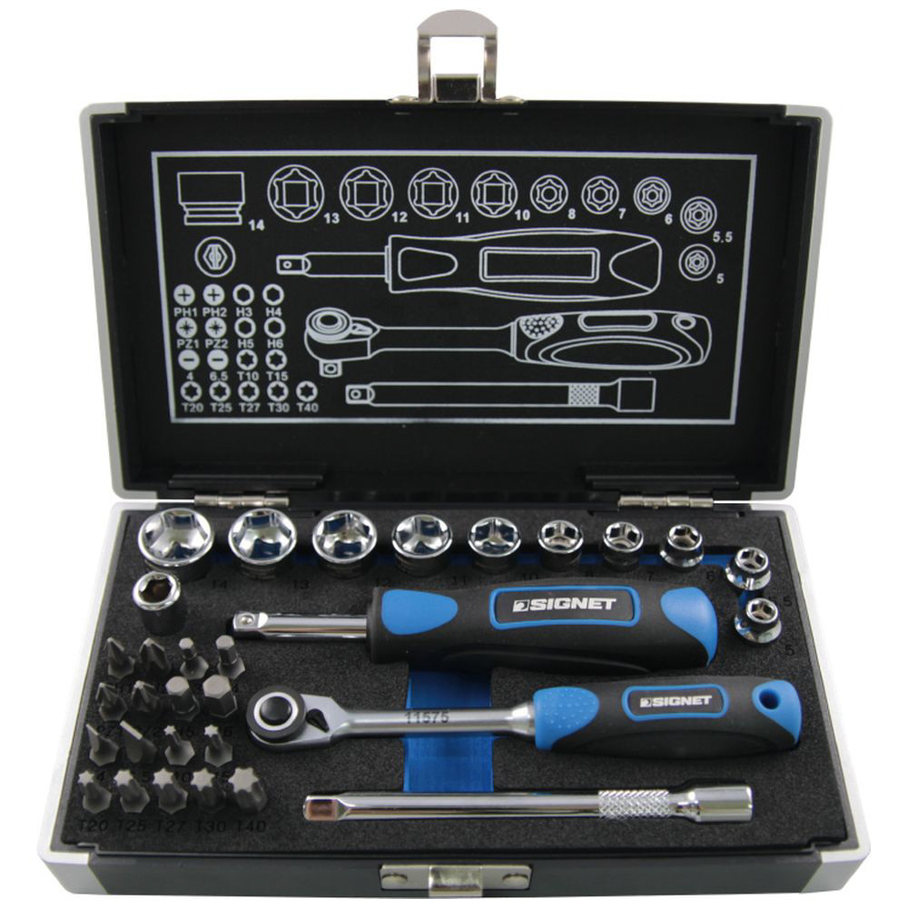 ・ソケット: 5・5.5・6・7・8・10・11・12・13・14mm(11124・11125・11126・11127・11128・11130・11131・11132・11133・11134)ラチェットハンドル: 72T(130mm)エクステンションバー: 100mmスピンナーハンドル: 120mm(軸長32mm)プラスビット: #1・2マイナスビット: 4・6.5PZポジ形ビット: 1・2ヘックスビット: 3・4・5・6TXビット: 10・15・20・25・27・30・40