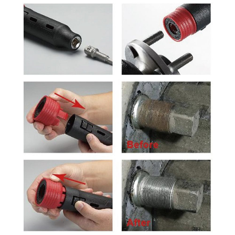 ■インパクトドライバー等に装着して、ボルト・シャフトの錆取りに使用できます。