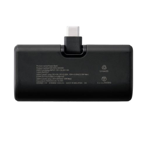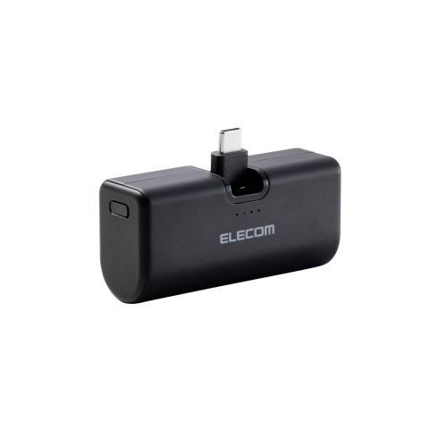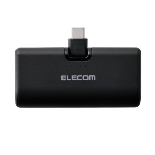 モバイルバッテリー 5000mAh 小型 軽量 USB-C端子一体型 ケーブルレス 折りたたみコネクター 【 USB Type-Cポート搭載 iPhone Android スマホ 充電器 】 PSE適合 機内持込可 DE-C57L-5000BK