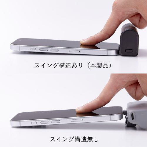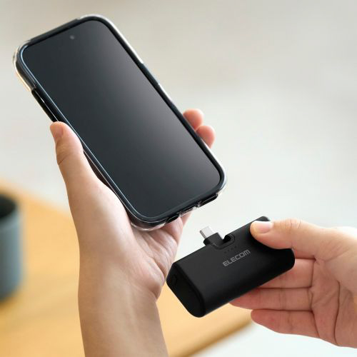 USB Type-C(TM)対応のスマートフォンに一体型コネクターを直接挿して充電できる、コンパクトサイズのモバイルバッテリーです。ケーブルいらずで、これ一つでサッと手軽に充電できます。ストレスフリーに持ち運べて、外出先でも重宝します。