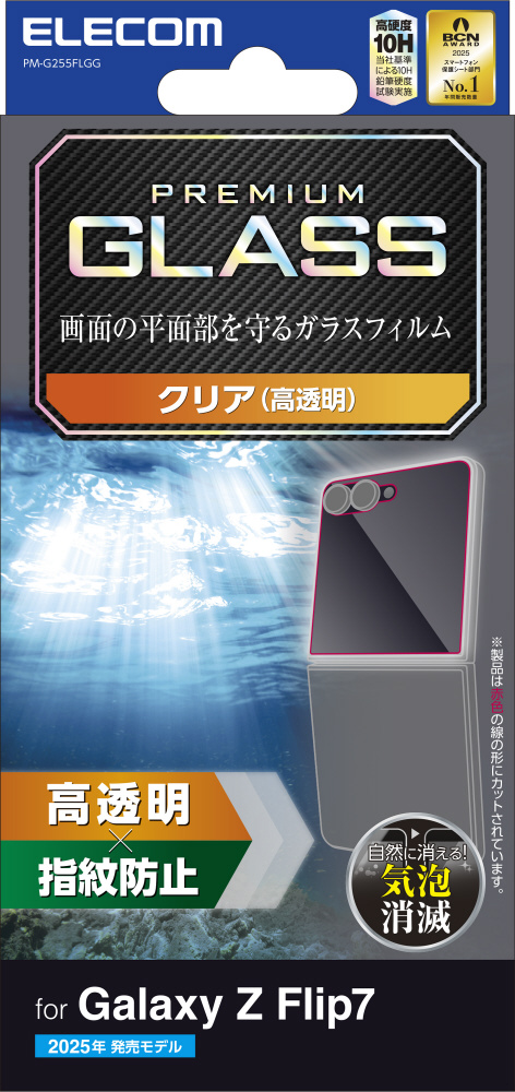 Galaxy Z Flip7 ( SC-55F ) ガラスフィルム 高透明 強化ガラス 表面硬度10H 指紋防止 気泡防止 飛散防止 PM-G255FLGG