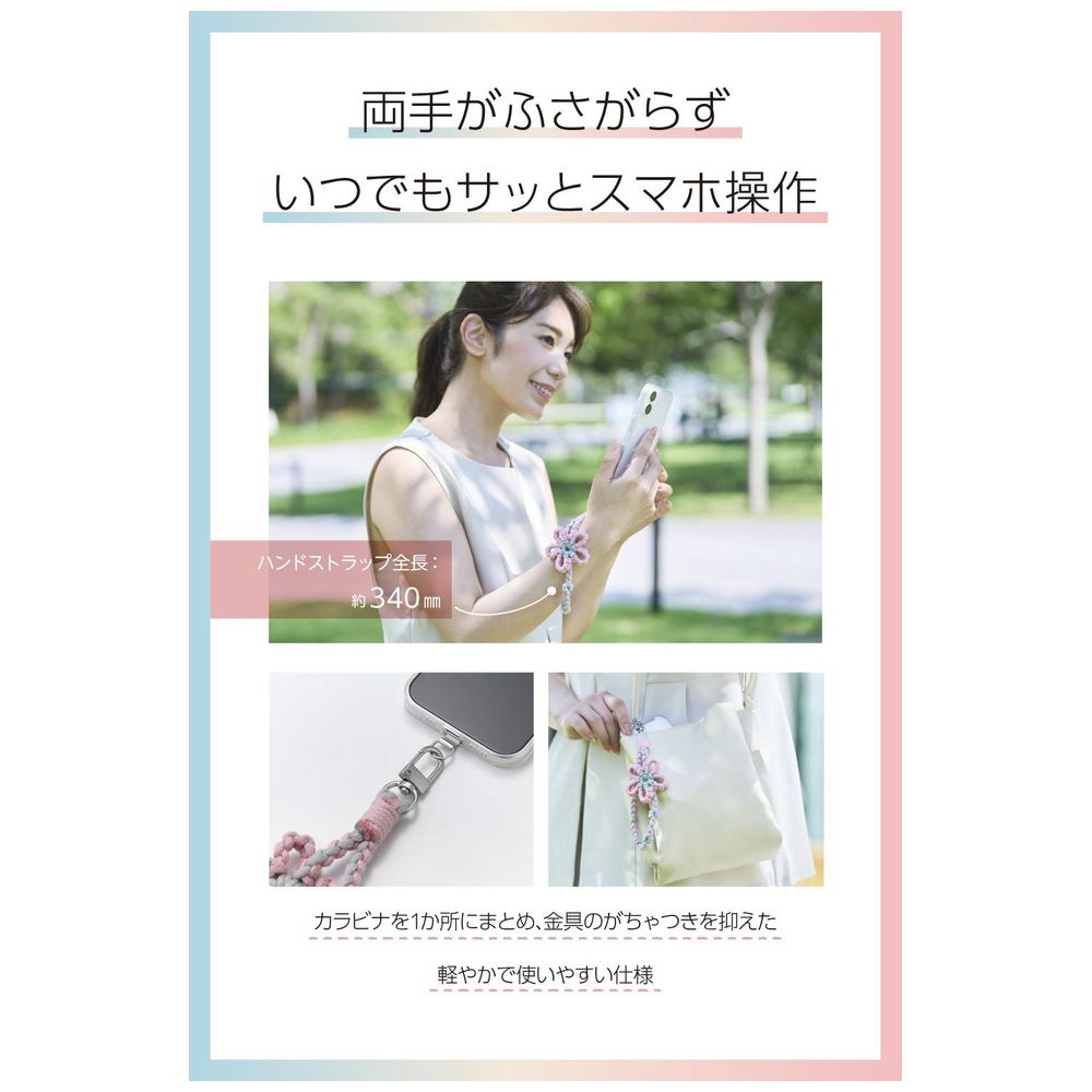 手首や腕から提げて持ち歩けるので、両手がふさがらずいつでもサッとスマートフォンの操作ができます。