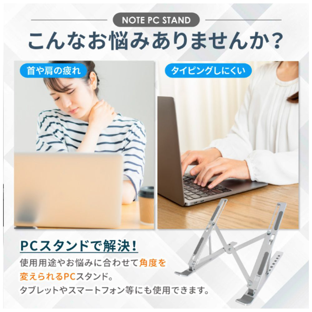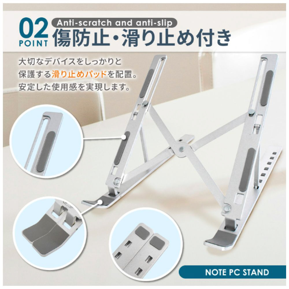 ノートパソコンスタンド[タブレットPC / スマホ対応]卓上 折りたたみ 角度調整 シルバー AC-PCS01 SR