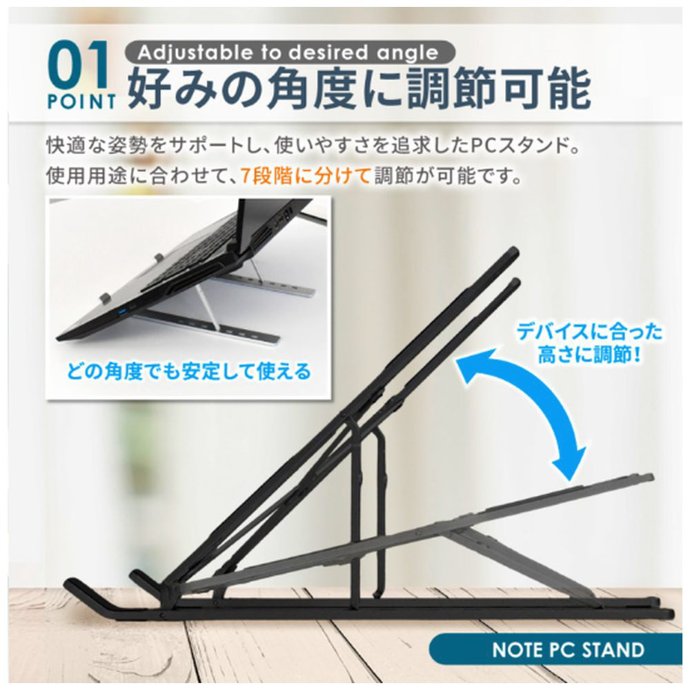 お好みの角度や高さでノートパソコンやタブレットを設置可能!