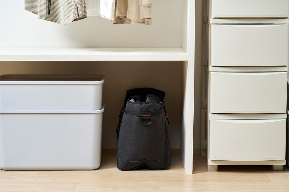 コンパクトに折りたためるから、持ち運びや収納にも便利。