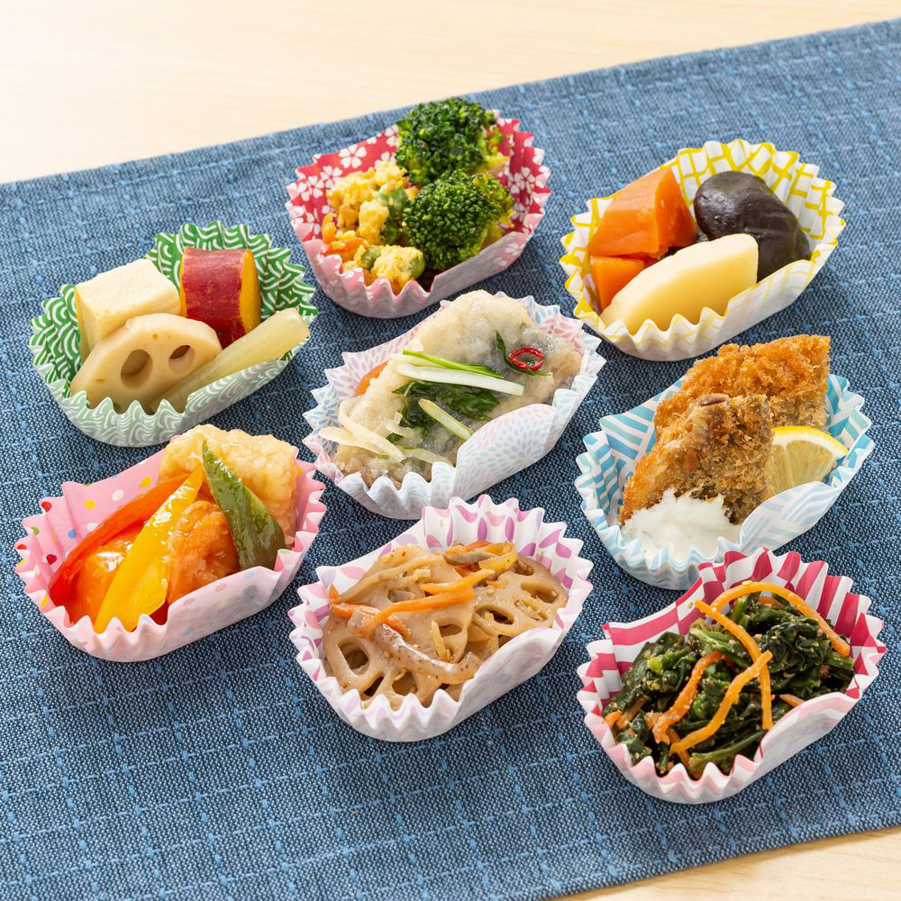 (1)レトロな和風柄の可愛い小紋柄でお弁当を華やかに演出します。