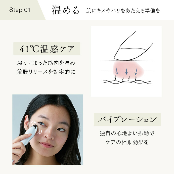 ●STEP 02 「ほぐす」手や指では届かない表情筋の深層部まで、的確にほぐす