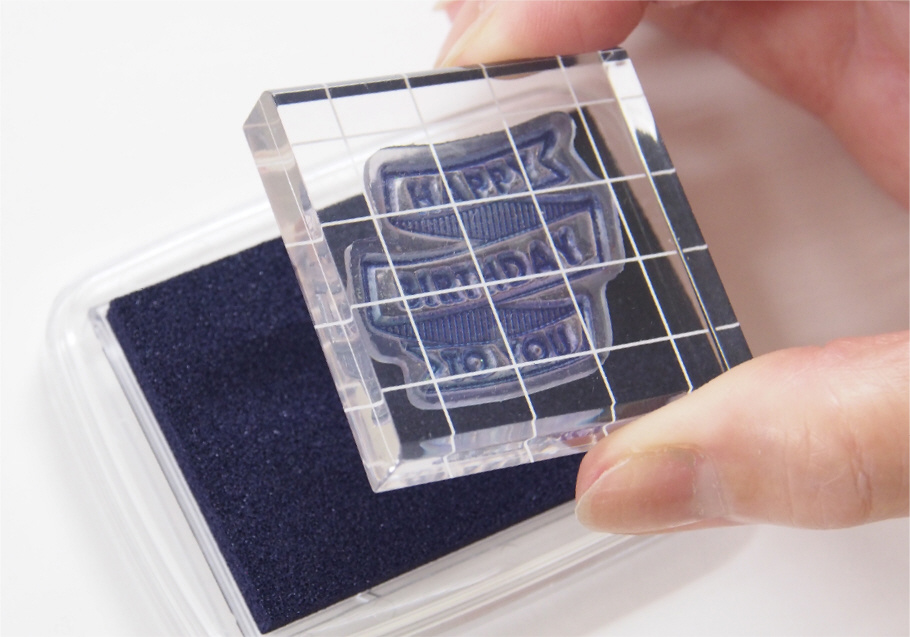 ・クリアスタンプを貼りつけて持ち手にするアクリルホルダーです。