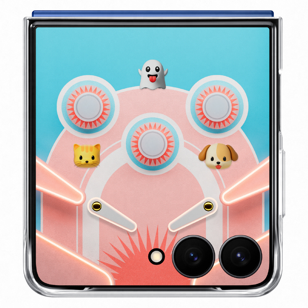 デジタルとアナログの枠を超えたFlip用スマートケースです。コンテンツカードを入れ替えることで、自動的ににZ Flipのカバーディスプレイの画像が変更されます。