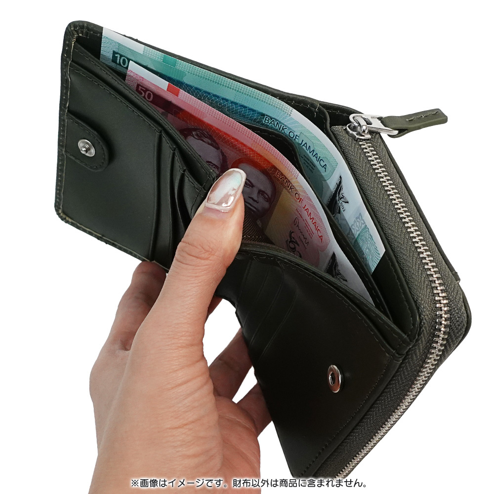 スリムな見た目ながら、収納力はしっかり。カードやお札、小銭を整理して持ち歩けます。