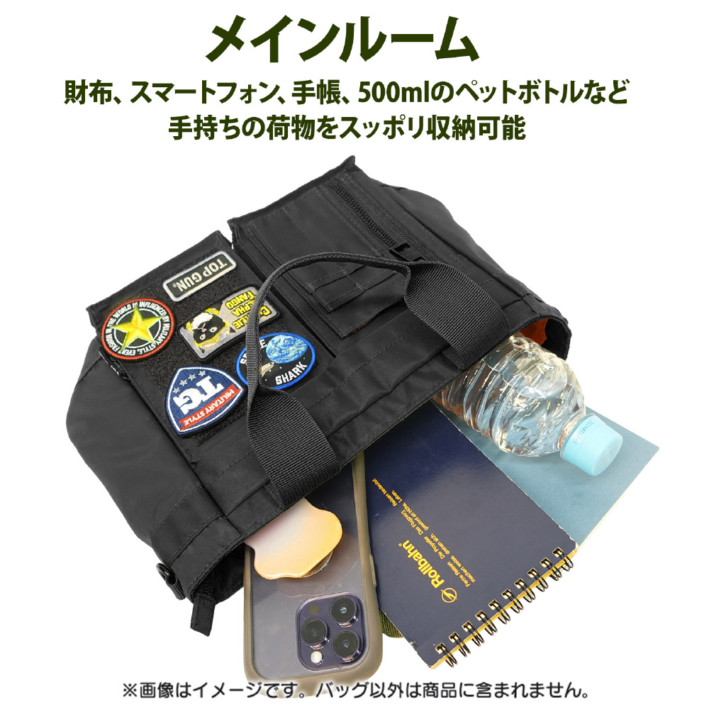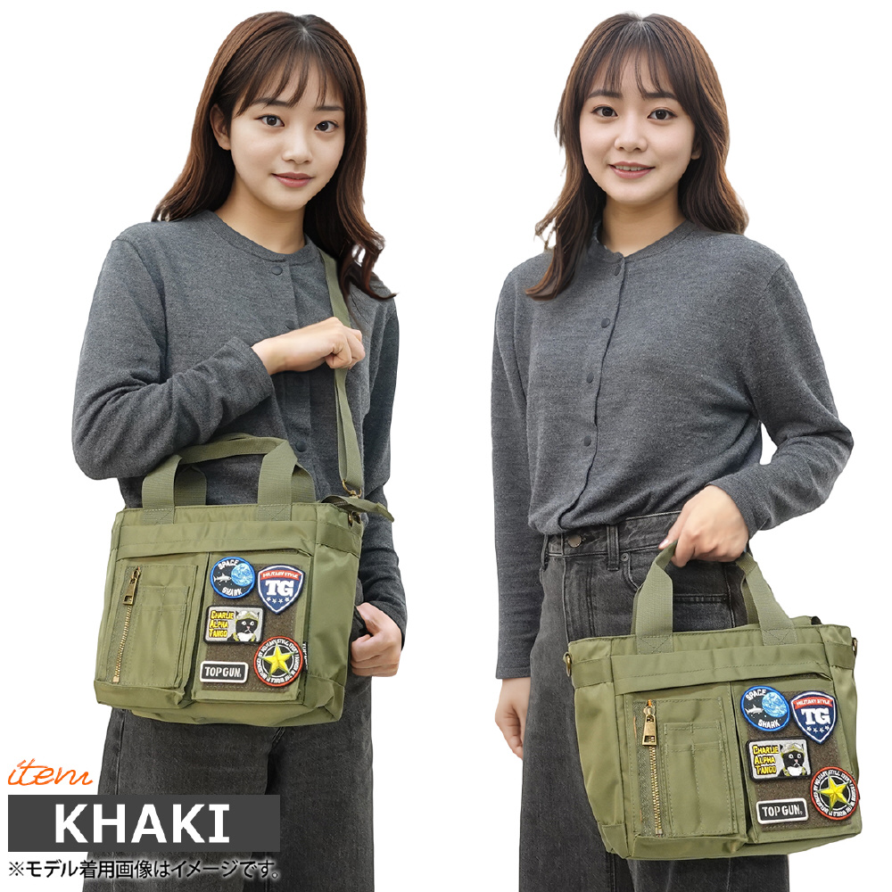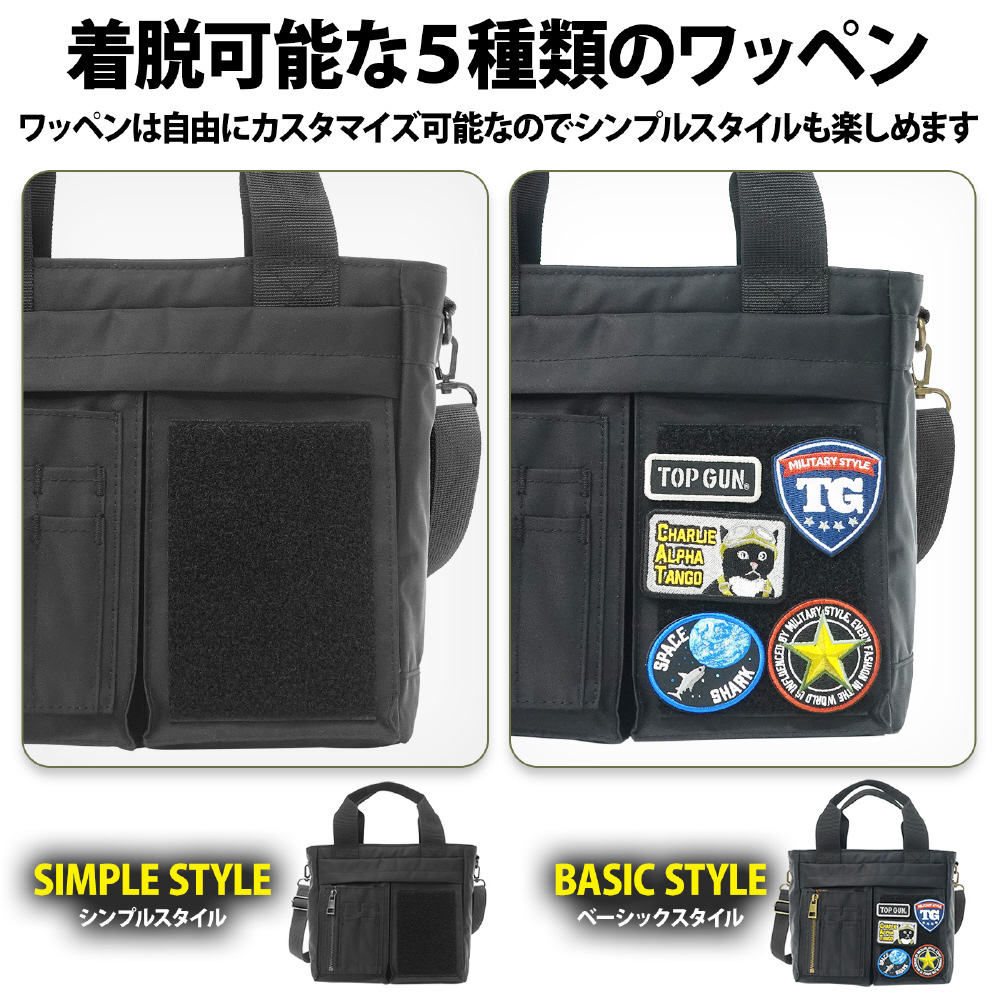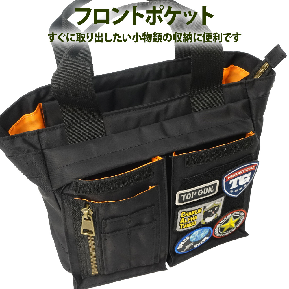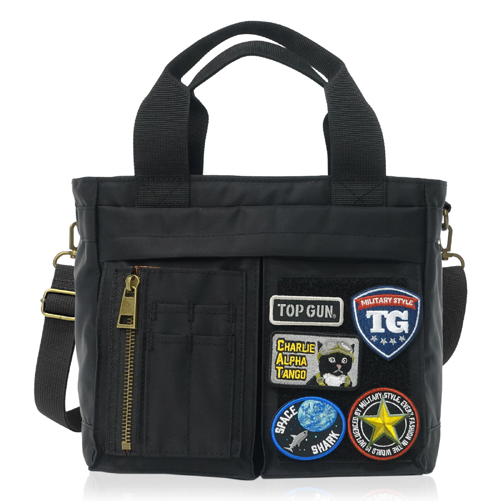 ナイロンツイル ワッペン ミドルトートバッグ TOP GUN BLACK 20369011