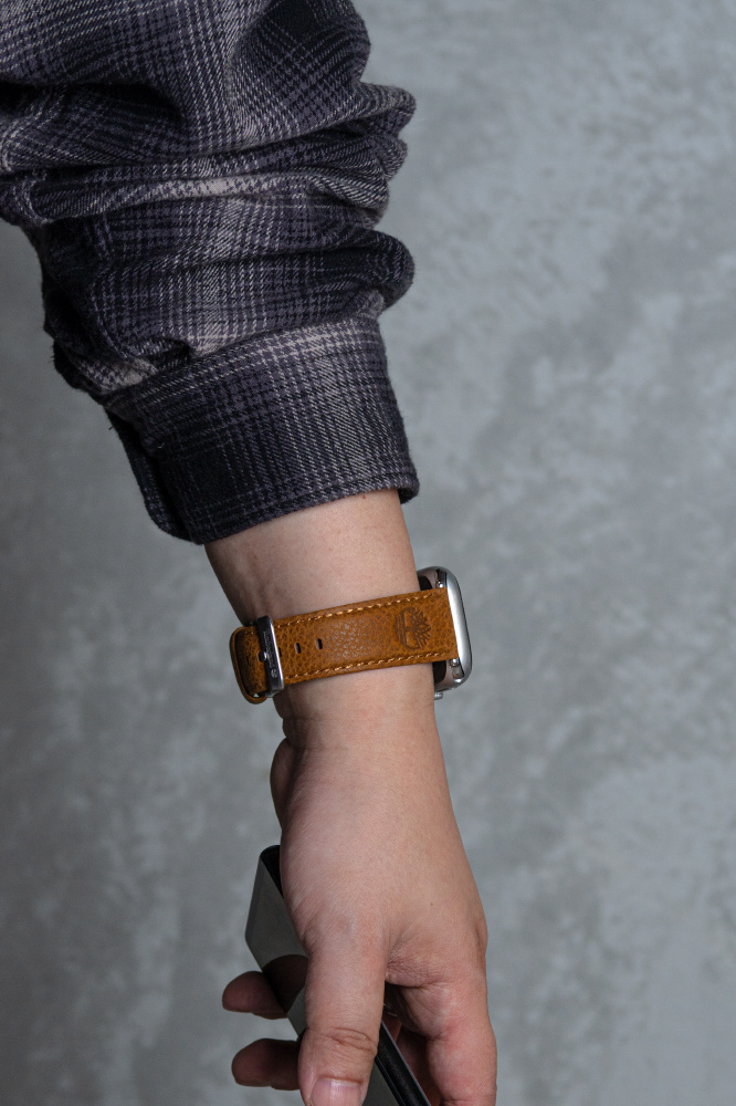 ティンバーランドの象徴「イエローブーツ」に使用される、LWG(レザー・ワーキング・グループ)認証のプレミアムレザーを贅沢に使用したストラップ。耐久性と柔軟性を兼ね備え、経年変化を楽しめるのが特長。