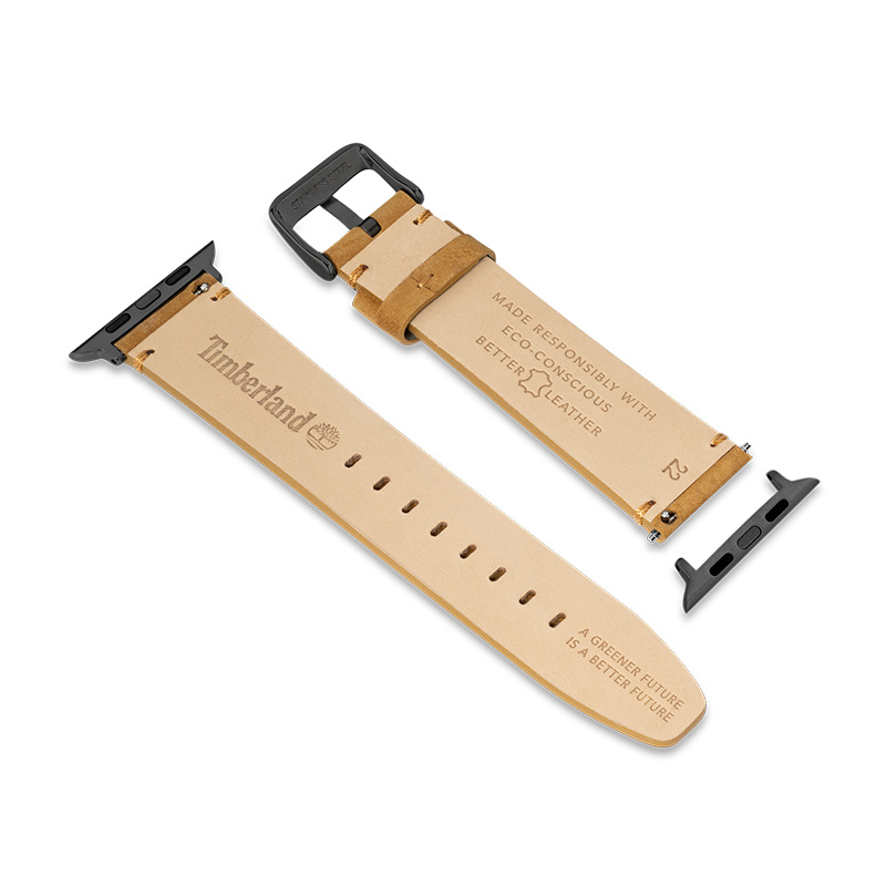 ティンバーランドの象徴「イエローブーツ」に使用される、LWG(レザー・ワーキング・グループ)認証のプレミアムレザーを贅沢に使用したストラップ。耐久性と柔軟性を兼ね備え、経年変化を楽しめるのが特長。