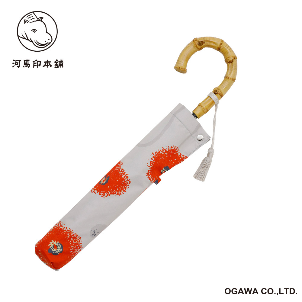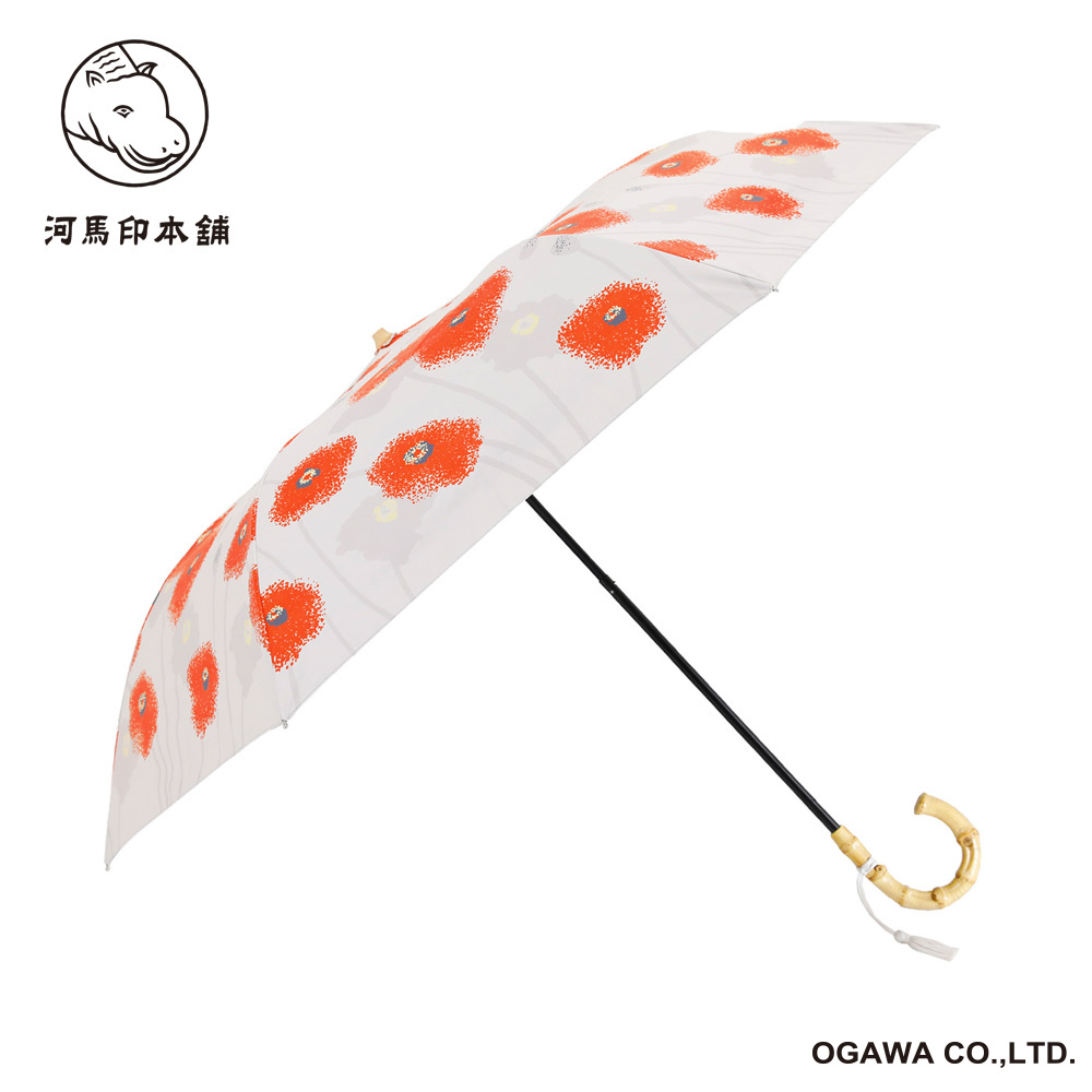 日傘 2段折りたたみ傘 河馬印本舗 ポピー(京緋色/きょうひいろ) LDW-50M-25TOP [晴雨兼用傘 /レディース /50cm]