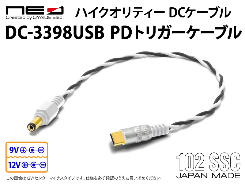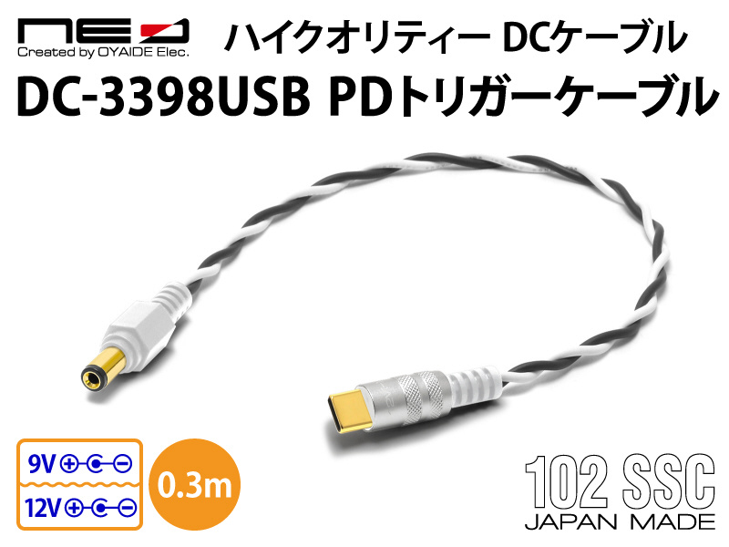 「DC-3398USB PDトリガーケーブル」に採用しているツイストケーブルには音響用配線材「オヤイデ 3398-18」を使用しています3398-18の導体にはオヤイデ電気が開発した音響用銅線「精密導体102SSC」を採用し銅線本来の導電効率を極限にまで高めることで優れた伝送性能を実現していますまた、DC-3398USB PDトリガーケーブルはAWG18(0.75sq)という極太導体を採用し導体抵抗を抑えることで電源の供給効率を向上させていますさらに、絶縁体には高い電気特性と耐久性を兼ね備えた「XLPE(架橋ポリエチレン)」を採用しUL3398規格に準拠し耐圧300V/耐熱150℃という高い安全性を備えたハイスペックな線材です。