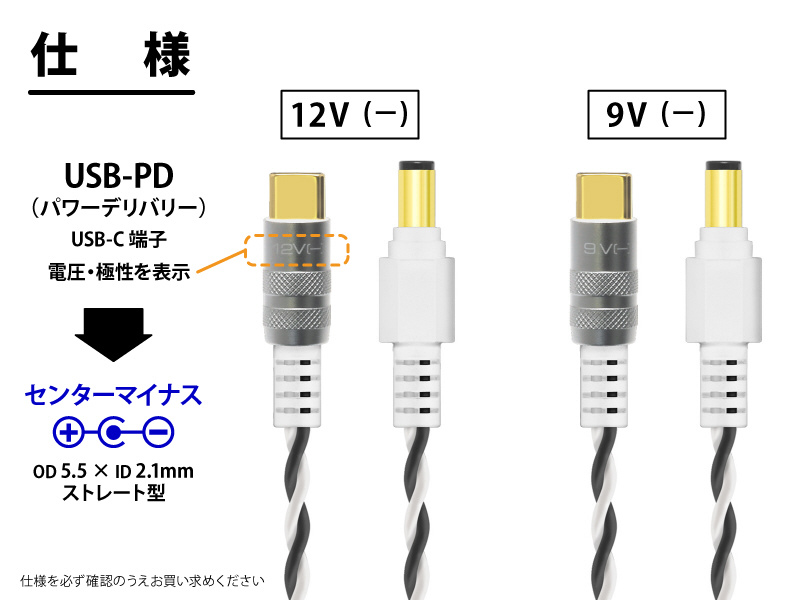 USB PD3.0規格に対応したUSB急速充電器やモバイルバッテリーと接続することで任意の電圧(9Vまたは12V)を取り出すことができる画期的な電源ケーブルです最大3Aまで供給が可能でマルチエフェクターなど大容量アダプターの代替としてもご使用いただけます