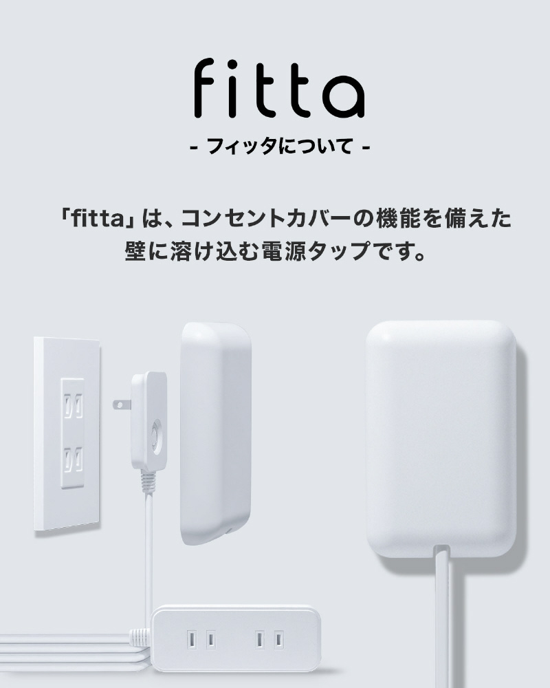 薄型コンセントカバー付き電源タップ fitta (フィッタ)。