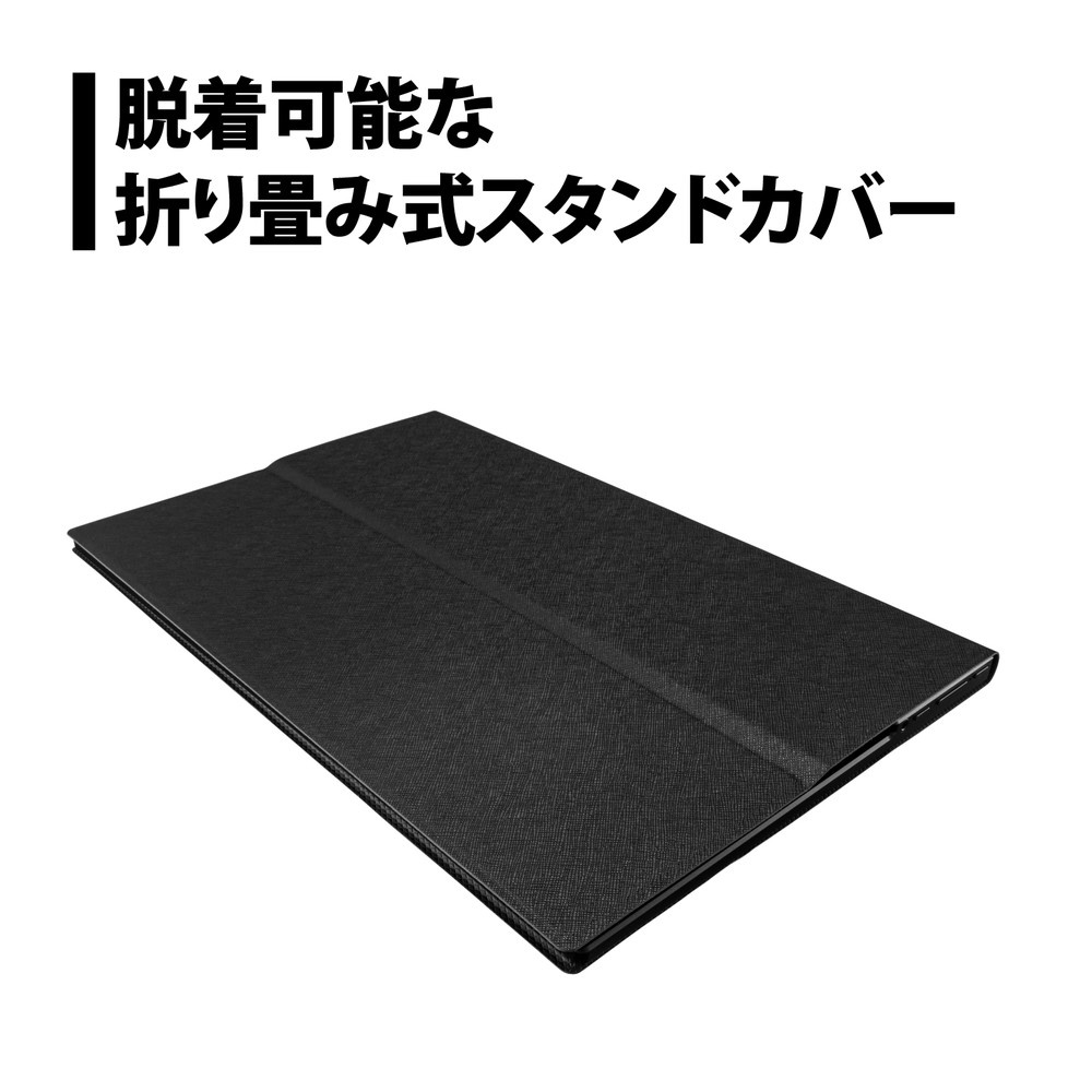付属の保護カバーは本体とマグネットで脱着し、折りたたむことで本体のスタンドとしても使用が可能です。
