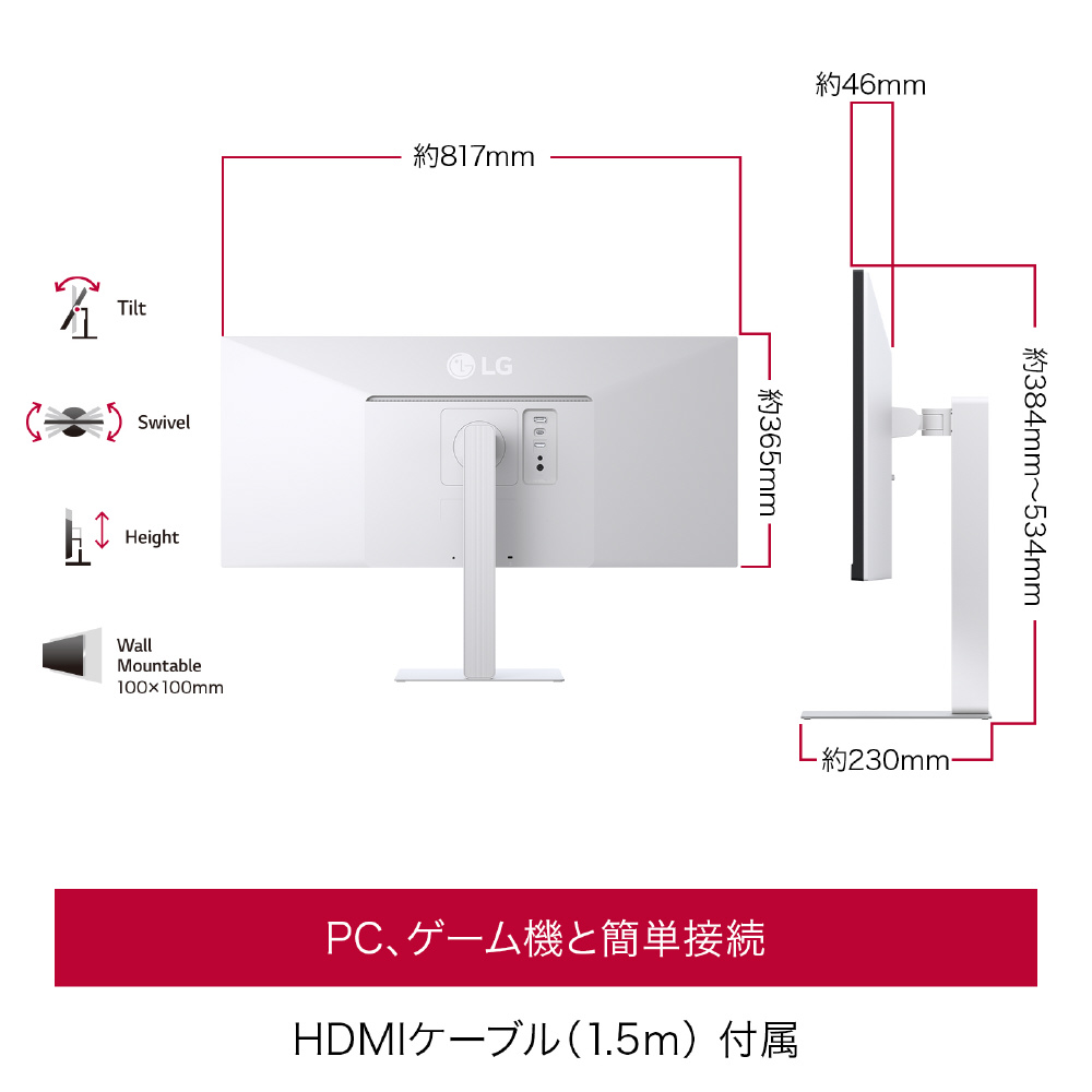 USB-C対応 PCモニター LG UltraWide 34U530A-W [34型 /UltraWide FHD(2560×1080) /ワイド /100Hz]