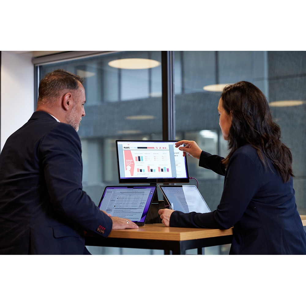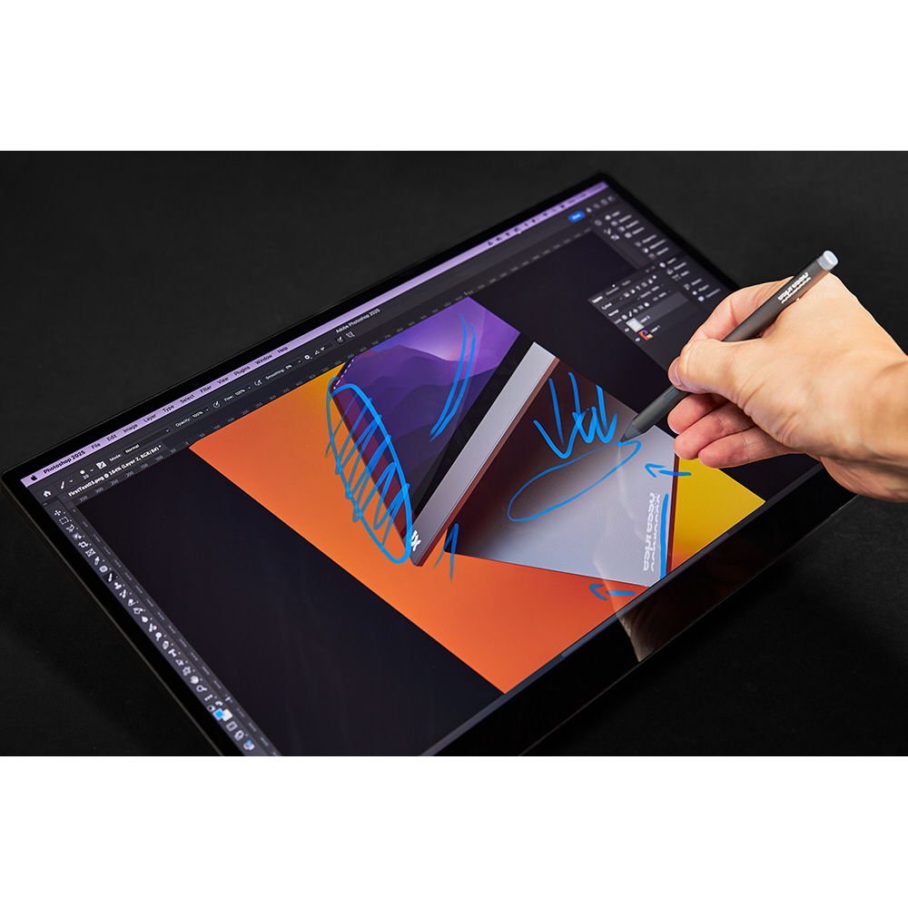 タッチ操作に対応したディスプレイには、4K対応の高解像度LCDパネルを搭載。細部まで鮮明に映し出し、資料やコンテンツの確認、映像制作やデザイン業務など、精度が求められる作業を正確かつ効率的に進められます。最大550nitの高輝度により、屋外や明るいワークスペースでも視認性を損なわず、移動先でも快適で直感的な操作が可能な作業環境を確保します。
