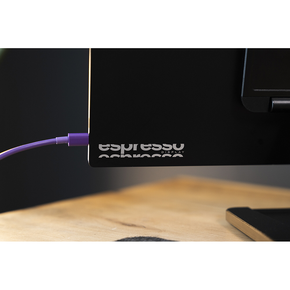 付属の「エスプレッソ スタンド プラス」は強力なマグネットでディスプレイを固定でき、設置や取り外しがスムーズ。高さ調整にも対応しており、ノートPCと組み合わせた際に目線を快適な位置に保つことができます。たとえばMacBookと併用する場合も、ディスプレイを上部に配置し、自然な姿勢で作業可能です。