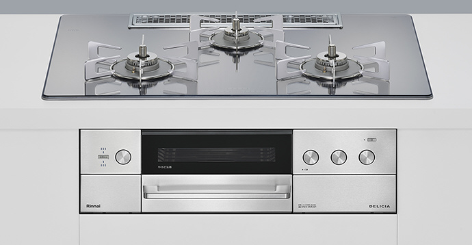 充実機能と格別に美しいフォルムの上質なガスコンロ。オーブン接続不可、レンジフード連動可タイプ。